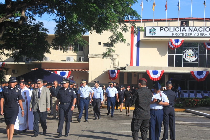 En un solemne acto realizado este sábado 2 de noviembre, en su sede ubicada en Ancón, la Policía Nacional rindió homenaje a la memoria de los policías caídos en cumplimiento de su deber, y cuyo legado se mantiene como ejemplo para las generaciones presentes y futuras de los uniformados. Durante la ceremonia se ofreció una plegaria por el descanso de estos héroes de la patria, que ofrendaron sus vidas en el fiel cumplimiento de su misión en pro de la seguridad del país. Seguido el ministro de Seguridad, José Raúl Mulino junto a los miembros del Directorio Nacional policial y jefes de zona colocaron las ofrendas florales al monumento póstumo, seguido del toque del Silencio que dio paso a los 21 disparos de bala de salva, en honor a estos valerosos hombres. Por su parte, el ministro Mulino exhortó al resto de los uniformados a continuar luchando contra la delincuencia para garantizar la tranquilidad de los panameños y panameñas; a la vez a que sigan honrando el lema de “Proteger y Servir”. También estuvieron presentes en este homenaje, directores y representantes de las demás entidades de seguridad, agregados militares e invitados especiales.