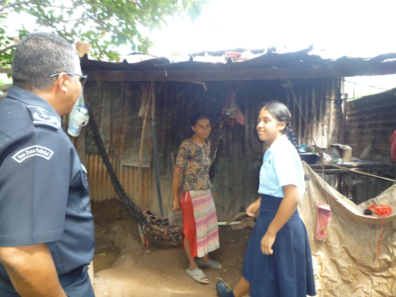 Los niños que viven junto a sus padres en extrema pobreza en una casa forrada con hojas de zinc y piso de tierra, son estudiantes destacados en este plantel, por lo que el Jefe de la zona el Comisionado Carlos Rumbo y el ejecutivo de la misma el Subcomisionado Nadim García realizaron una inspección a la obra y constatar de primera mano sus avances.