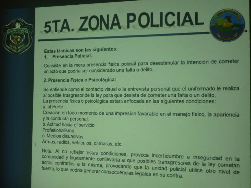El establecimiento adecuado de los puestos de control, el papel de la ronda policial en la comunidad así como el uso limitado de la fuerza son temas que están siendo refrescados en la mente de las unidades policiales a fin de cumplir de manera adecuada y efectiva con la función de proteger y servir a la ciudadanía panameña residente en el sector de Chepo.