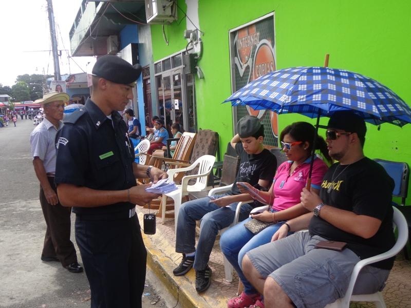 Por su parte el departamento de Seguridad Ciudadana aprovechó la oportunidad para repartir volantes relacionadas a medidas de seguridad que se deben tomar durante estas festividades. Los estudiantes del Centro de Enseñanza Superior repartieron volantes promocionado la carrera Policial.