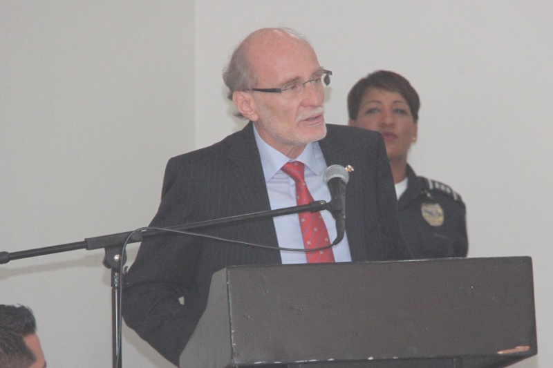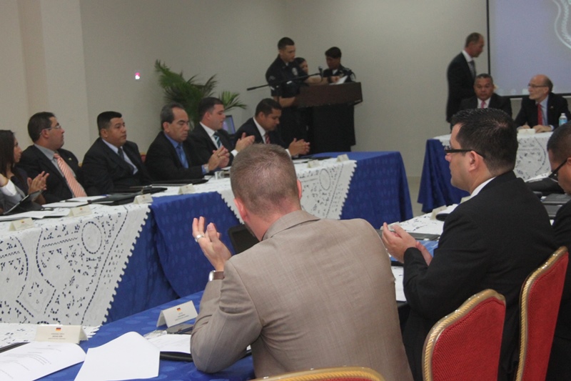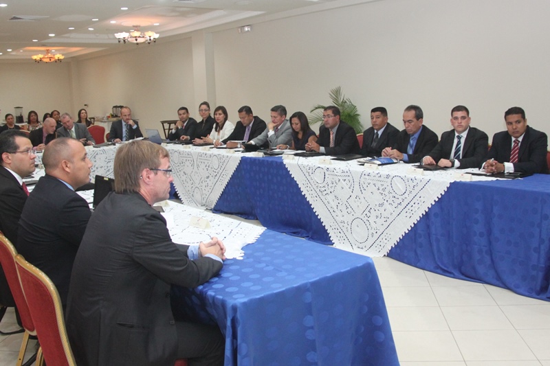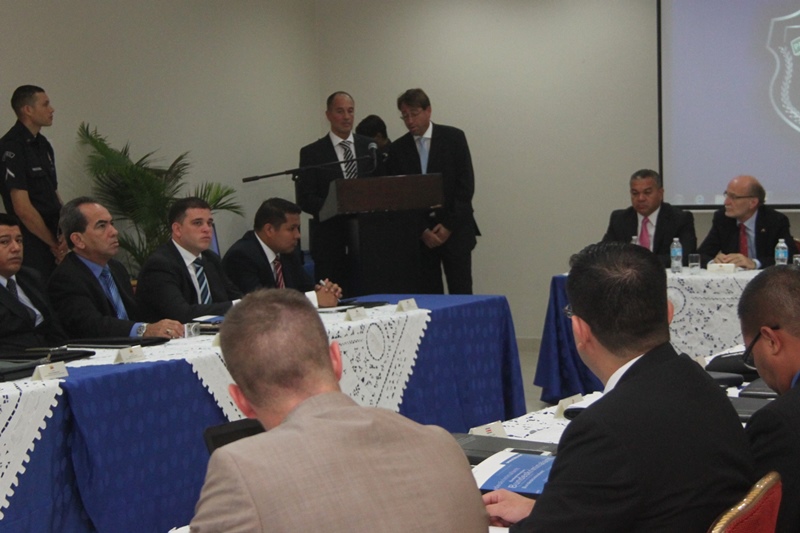 La Embajada de la República Federal de Alemania con el apoyo de la Policía Nacional dio formal apertura del taller internacional denominado “Fortalecimiento de la Cooperación Operativa Policial en la Lucha Contra el Narcotráfico Internacional Organizado”, en el que también participaron representantes de Colombia, Costa Rica, Ecuador, Venezuela y Alemania. Este evento tiene como propósito establecer un encuentro entre investigadores y fiscales con experiencia, fomentando un diálogo estrecho y reforzar la cooperación entre los países e instituciones participantes, aumentando en la práctica la capacidad de prevenir y detectar las tentativas de tráfico ilícito. Durante la actividad de inauguración estuvieron presentes el embajador de la República Federal de Alemania, Hermann Sausen; comisionado Manuel Castillo, jefe de la Dirección de Investigación Judicial (DIJ) y el comisionado, Jorge Miranda, Jefe de la Dirección de Información Policial (DIP). |