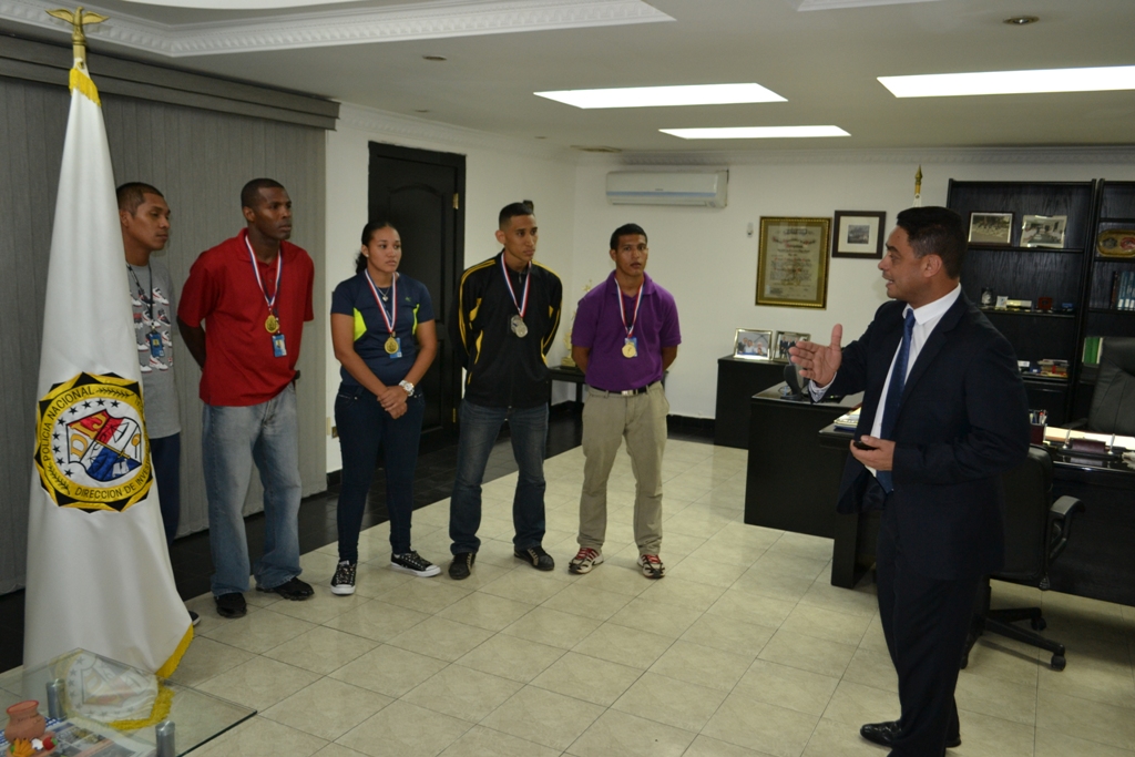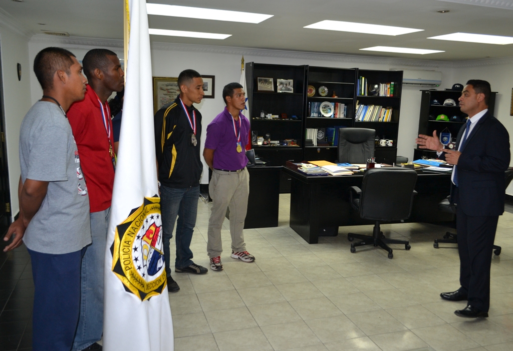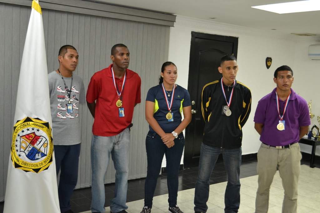 Tras la realización del decimo Cuarto Campeonato Interzona de Boxeo Olímpico de la Policía Nacional, las unidades que representaron a la Dirección de Investigación Judicial en esta categoría resultados apremiados con medallas de oro y plata. El director de Investigación Judicial (DIJ) de la Policía Nacional Comisionado Manuel Castillo recibió a los ganadores a quienes agradeció por su dedicación en sus labores investigativas primeramente y su esfuerzo demostrado en el ring. Los cabos Fermín García, Isacio Martínez y Javier Sánchez en conjunto con los agentes Sabdier Palacio y Darleth Samaniego fueron los participantes del campeonato en representación de la DIJ. Los contrincantes de igual forma entrenados midieron fuerzas hasta la clausura de dicho campeonato. Sus compañeros y amigos de la DIJ les extienden de igual forma felicitaciones. |