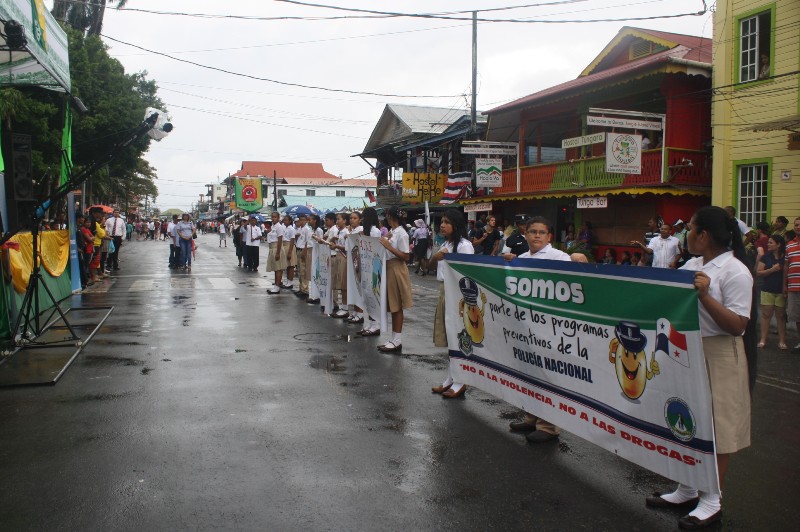 El distrito de Bocas del Toro, celebró este sábado 16 de noviembre, sus 110 años de fundación. Se da inicio a los actos protocolares frente al Palacio Municipal donde 26 bandas de diferente escuelas y colegios se hicieron presentes. La tarima principal que se encontraba frente al parque Simón Bolívar contó con la presencia de diferentes autoridades como la Ministra de Educación Lucy Molinar el gobernador de la provincia Eusebio Vega, el alcalde José Anderson y el Comisionado Javier Castillo Jefe de la Zona de Policía de Bocas del Toro. Con la participación de los niños del Centro de Orientación Infantil (COIF), los estudiantes del programa Jóvenes Contra Delito (JOCODE) y los Coordinadores del Programa Vecinos Vigilantes. La Ministra de Educación elogió la participación de los niños del (COIF) que vestían orgullosamente el uniforme policial.