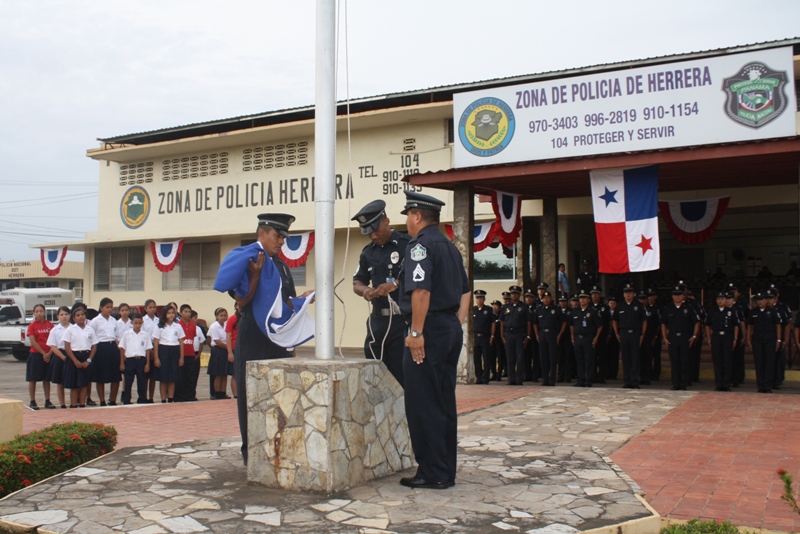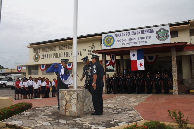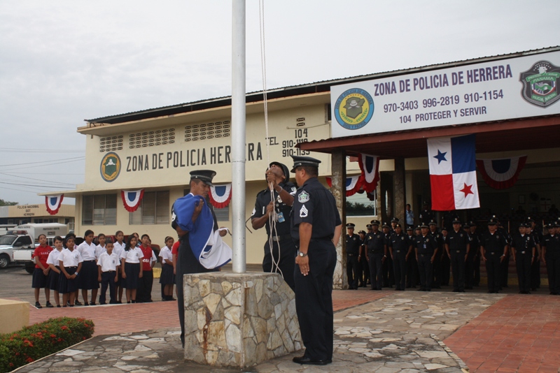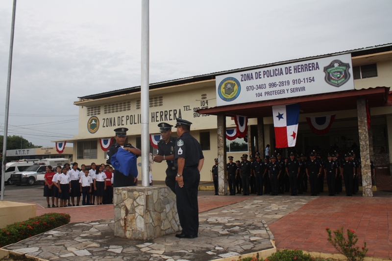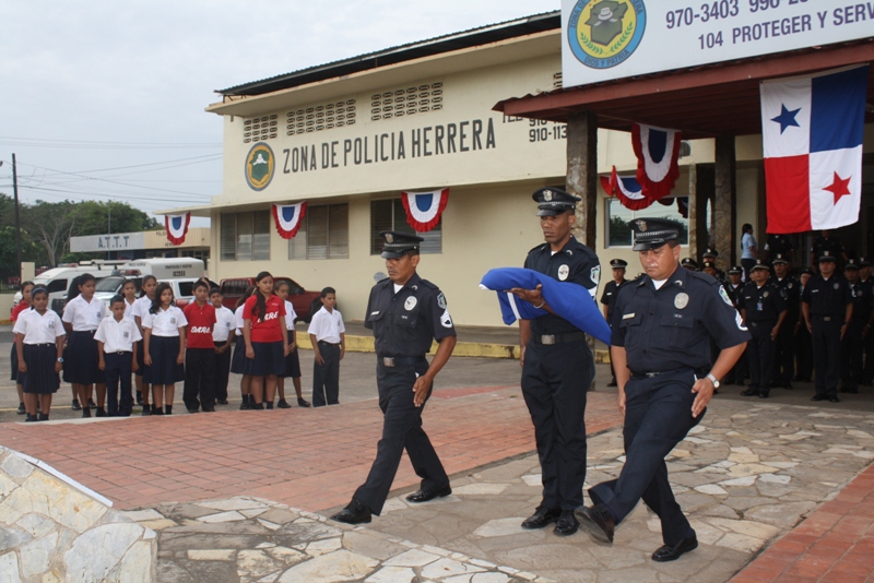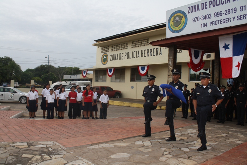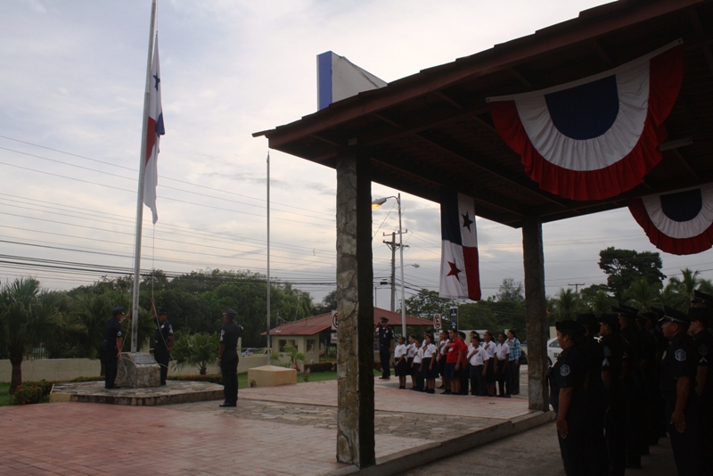 Estudiantes de la escuela John F. Kennedy de la Arena de Chitré, que forman parte del programa D.A.R.E. participaron este lunes del acto cívico en honor a nuestros símbolos patrios, que se realizó en las instalaciones de la sexta Zona Policial de Herrera. Al unisonó los alumnos de este plantel educativo, docentes, uniformados y miembros no juramentados entonaron las notas del Himno Nacional, resaltando nuestro orgullo de ser panameños. Con esta iniciativa la Policía Nacional motiva a los niños y adolescentes a valorar y honrar a la patria. |
