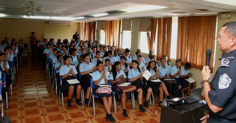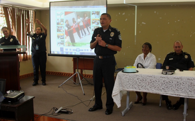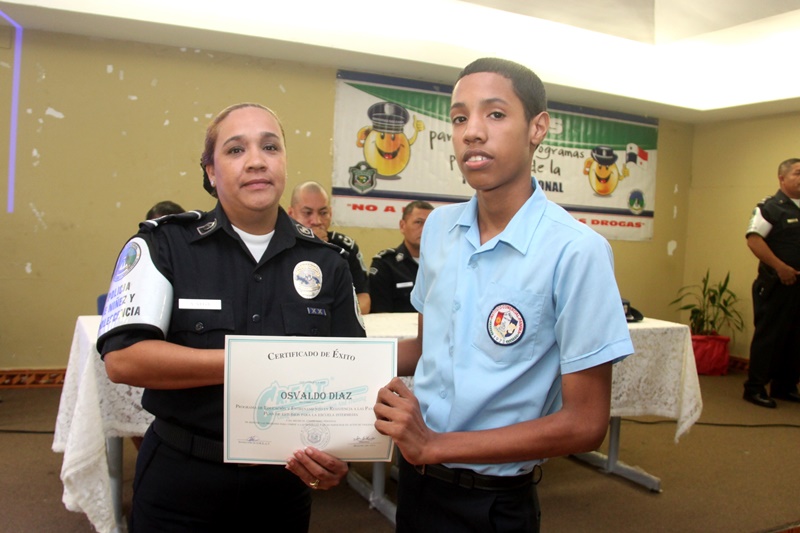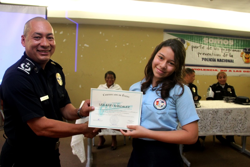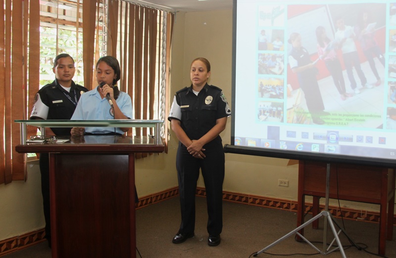 Recientemente se realizó la culminación de la implementación del Programa de Educación y Entrenamiento en Resistencia a las pandillas (GREAT, por sus siglas en inglés) a través del cual se graduaron unos 217 estudiantes del séptimo grado del Instituto Comercial Panamá. En el acto estuvieron presentes, los profesores y personal docente del plantel además del Subcomisionado Carlos Ortiz, jefe del área oeste, además de la Mayor Alma Vega ejecutiva de la Policía de Niñez y Adolescencia. En la graduación los estudiantes del programa GREAT le rindieron homenaje a la teniente Estefany Anorio por su incansable labor obsequiándole una canastilla. El curso fue impartido por la Sargento Primero Beatriz Pimentel de la Policía de Niñez y Adolescencia, a quien los estudiantes agasajaron sorpresivamente con el canto de su cumpleaños. Posteriormente se realizó la entrega de diplomas y se dieron algunas palabras por la Sargento Pimentel la cual manifestó haber cumplido con la meta Great de ayudar a la juventud para que desarrolle su capacidad de adaptación en la vida para evitar la asociación con pandillas. El programa es un planteamiento que combate los factores de riesgo asociados con las conductas pandilleras en los jóvenes. Las lecciones son interactivas y diseñadas para permitir a los alumnos a que practiquen las buenas conductas que permanecerán con ellos el resto de sus años formativos. |