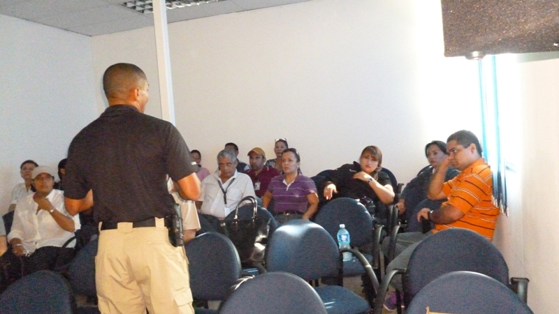 Unidades del Departamento de Protección y Seguridad (P.M.I) de la Policía Nacional asignadas al Departamento de Escolta del Ministerio Público instruyeron a fiscales y personeros de la provincia de Herrera y Los Santos, dando continuidad al ciclo de capacitación “Autoprotección y Polígono de Tiro”. Esta jornada de capacitación dirigida a fiscales y personeros a nivel nacional, tiene como objetivo intercambiar consejos, mostrándole técnicas de seguridad que debe adoptar en caso de riesgo o peligro inminente del funcionario escoltado y como debe reaccionar para brindar mejor colaboración al agente protector; de igual forma conocer el uso de las armas de fuego y la labor de quien le brinda seguridad. La charla fue dictada por el Mayor Julio César Wong Garrido, Jefe del Departamento de Escolta del Ministerio Público; quien aportó su experiencia en materia de seguridad. También se contó con el apoyo de la Zona de Policía de Herrera y del Servicio Nacional de Protección Civil. |