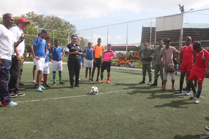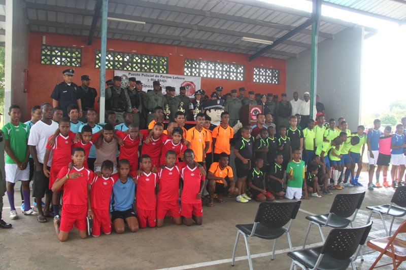 La Policía Nacional, en conjunto con líderes comunitarios, se mantienen llevando programa preventivos. Este sàbado se inauguró la Liga de fútbol, Copa "Semilla del Barrio" donde participaran 19 equipos conformados por jóvenes de 12 a 17 años residentes de la diferentes calles de Rio Abajo. Esta iniciativa de la Policía Nacional busca, a través del deporte, sacar a la juventud de las garras de la delincuencia y lograr la convivencia dentro de estos grupos y exhórtarlos que siga por el camino del bien, donde por testimonio propios indicaron que ven al uniformado como sus amigos. En un ambiente de alegría, de los participantes, amigos, espectadores y autoridades locales, los 19 equipos iniciaron la jornada de juegos, tras el saque de honor efectuado por la subcomisionada Erly Miranda de la Policía de la Niñez y Adolescencia. Los equipos ganadores y mejores jugadores recibirán tremendo premios para que compartan con sus familiares este mes de diciembre. El subcomisionado Ramón López, jefe del Puesto Policial de Parque Lefevre, señaló que el momento fue propicio para hacer docencia en los presentes a través de valores exhortándoles a la integración y que participen de los programas preventivos que impulsa la Policía Nacional en conjunto con otras organizaciones en pro de la seguridad de la población panameña. |
