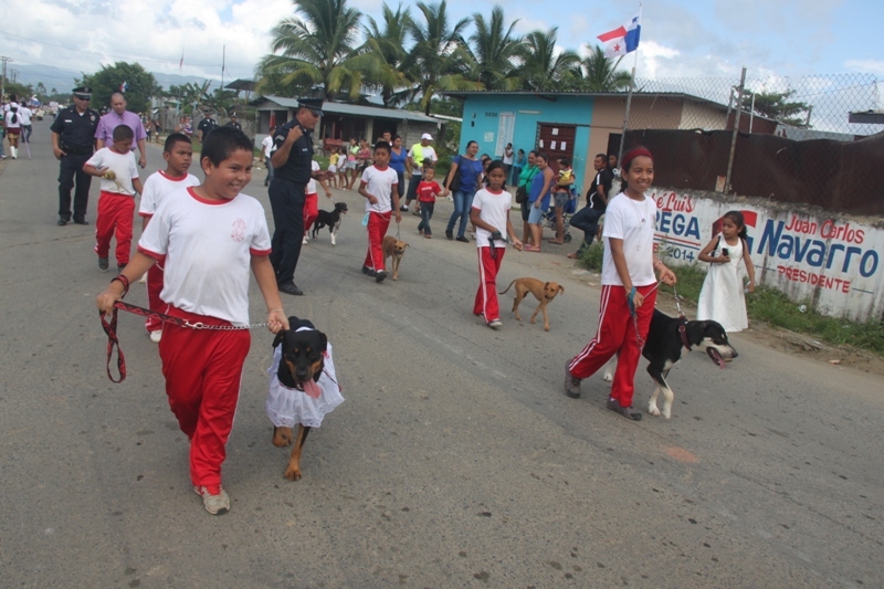 Grupo Juvenil Canino de la Policía Nacional (Grujucan), conformado por estudiantes de la Escuela de Virgen Guadalupe, se hizo presente en el desfile realizado este 1 de diciembre en el sector de La Garzas de Pacora en el marco de la celebración de nuestra independencia con España. El capitán Alberto Mejía jefe de la oficina de Seguridad Ciudadana Área Este indicó que estos niños participan del programa de desarrollo humano y canino el cual es organizado por el subcomisionado Franklin González. El objetivo es que estos niños de la comunidad lleven a sus mascota y reciban entrenamientos por instructores de la Policía Nacional para su mejor desenvolvimiento. También resaltó que unos de los requisitos para entrar al programa es el buen comportamiento y buenas calificaciones. El director de la Escuela Virgen de Guadalupe se mostró contento con los diferentes programas preventivos y de docencia en materia de seguridad que ha llevado a la institución policial a este Centro educativo y que ha mejorado en la disciplina del estudiantado Estas actividades se dan como parte de los programas de acercamiento que lleva a cabo la institución con todos los adolescentes del país, con el objetivo de dar a conocer la misión fundamental de Proteger y Servir.