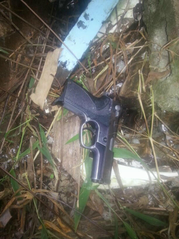 Las unidades policiales le dieron persecución a un sujeto que al verse ya capturado lanzó un objeto al patio de una residencia, por lo que se procedió a realizar la diligencia de allanamiento encontrando dos armas de fuego una calibre 380 con cuatro municiones y otra 9MM con 8 municiones, igualmente se encontraron 14 pases con marihuana. |