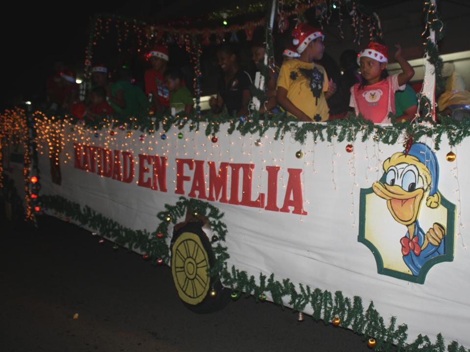 La Zona de Policía de Bocas del Toro participó este domingo 1 de diciembre del desfile navideño organizado por el Club Activo 20-30 donde la 1º zona policial estuvo en el evento con una carroza navideña. En esta ocasión, niños y niñas hijos de unidades de la Policía Nacional recorrían las calles de Changuinola en un tren navideño dando golosinas a todos los ciudadanos que abarrotaron las calles para ver el desfile. Según los organizadores la representación de la Policía Nacional en el desfile fue un éxito tanto con la seguridad como también con el carro alegórico. Luego de culminar el desfile, niños y niñas hijos de funcionarios de diferentes Instituciones y la Policía Nacional realizaron un drama del nacimiento del niño Jesús, ocupando el papel principal de la obra el bebé Danny Daniel Gutiérrez, de tan solo cuatro meses de nacido hijo de una unidad policial. El Comisionado Javier Castillo Jefe de la 1º Zona Policial prometió participar en esta y otras actividades que organice el Club 20-30 que vallan en beneficio de la comunidad bocatoreña. |