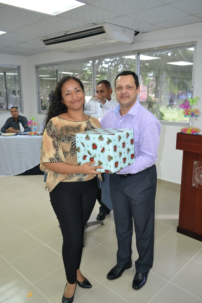 La Dirección de Investigación Judicial (DIJ) rindió homenaje al día de las madres reconociendo el rol de investigadoras y madres que ejercen diariamente estas unidades. La ceremonia se llevó a cabo en la sede de la DIJ donde se contó con la participación de un mago que sorprendió a las invitadas con trucos de magias, en donde muchas de ellas participaron. Además se contó con la presentación del humorista Andrés Poveda quien con sus alegóricos chistes hizo reír a todos, inclusive hasta lágrimas de rosa se pudo notar. Lo que no pudo faltar fue la serenata al día de las madres con que fueron agasajadas estas valiosas mujeres investigadoras. Seguido, disfrutaron de un delicioso almuerzo servido por unidades masculinas que se lucieron en atender a las mamás en su día. Sin esperar más se hizo entrega de obsequios a las homenajeadas por parte de los oficiales que estuvieron presentes en la actividad, entre ellos el subcomisionado Alexis Muñoz subdirector de investigación judicial, el comisionado José Huertas jefe de Investigaciones Criminales entre otros. Quienes realmente sorprendieron fueron los organizadores de la actividad que no descuidaron ni el mínimo detalle, hasta se vistieron de saloneros para brindar mayor atención a las unidades madres en su día. A todas las unidades madres que dividen su tiempo en pro de la seguridad ciudadana felicitaciones en su día les desea la Dirección de Investigación Judicial. |