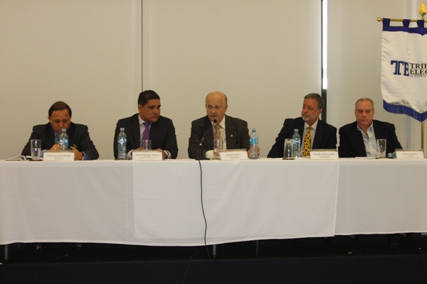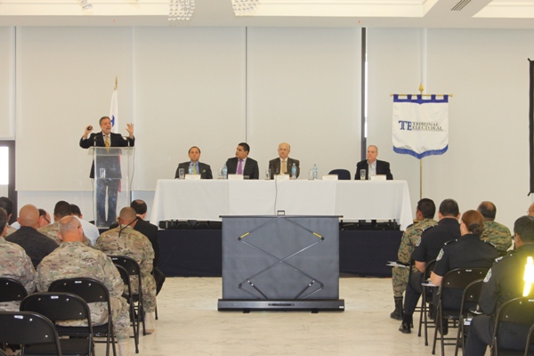 El Tribunal Electoral inició una jornada de capacitación a jefes y miembros de los directorios de los estamentos de la Fuerza Pública, en relación con la labor que realizarán estas instituciones para garantizar la seguridad y el normal desarrollo de las Elecciones Generales del 4 de mayo. Los magistrados Erasmo Pinilla, Heriberto Araúz y Eduardo Valdés Escoffery encabezaron la reunión ante el auditorio integrado por el viceministro de Seguridad, Manuel Moreno; el director de la Policía Nacional, Julio Moltó; el director del Servicio de Protección Institucional, Jaime Trujillo; además del comisionado Jefe del Servicio Nacional Aeronaval, Belsio González, y el comisionado del Servicio Nacional de Fronteras, Cristian Hayer. Los directores y altos mandos de la Fuerza Pública, a su vez, capacitarán a un grupo especial de instructores a nivel nacional, quienes impartirán esta materia a las miles de unidades que estarán de servicio durante el proceso electoral. La actividad fue organizada por la Comisión de Seguridad del Plan General de Elecciones (PLAGEL), que también se encagará de coordinar con las instituciones de emergencia como la Cruz Roja, SINAPROC, Ministerio de Salud, los cuerpos de bomberos y otras entidades fundamentales para el buen desarrollo de las elecciones como la Fiscalía Electoral y Delegados Electorales. El magistrado Erasmo Pinilla dijo que esta reunión de trabajo es una vía de comunicación directa y abierta entre el Tribunal Electoral y los estamentos de seguridad, porque en un proceso electoral todo debe estar debidamente coordinado. Destacó la innovación del voto por Internet a que tendrán acceso los electores residentes en el extranjero. Explicó que se entrenarán 32 mil miembros de mesas de votación y juntas de escrutinio, quienes celebrarán el proceso de votación, conteo de los votos y recibirán un viático por su participación, que en estas elecciones igualmente se les entregará a todos los miembros de la Fuerza Pública que estarán de servicio en los comicios del 4 de mayo. |