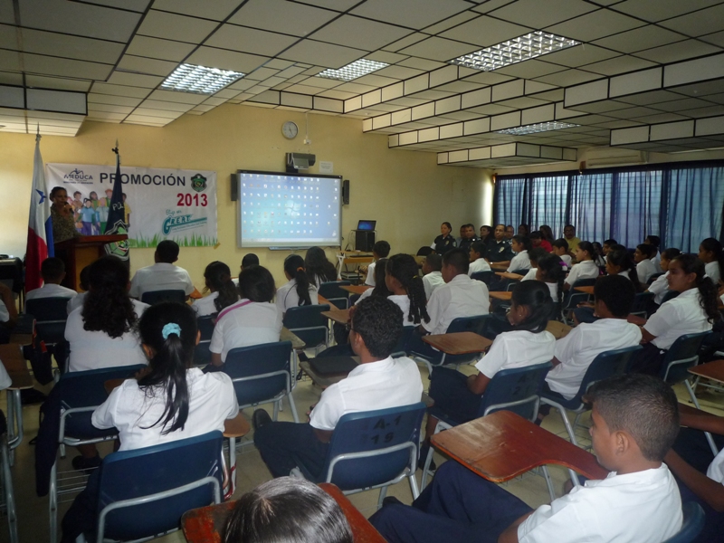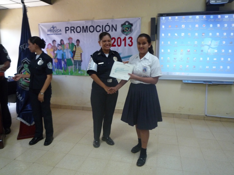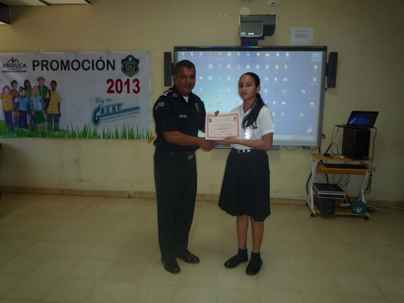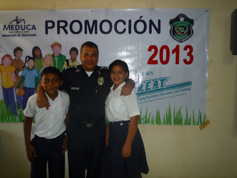 Unos 200 estudiantes de las escuelas primarias de Atalaya, Los Boquerones y San Antonio, en la provincia de Veraguas, culminaron en la mañana de este martes 10 de diciembre la etapa de preparación del programa GREAT, el cual consiste en la prevención en el uso de las drogas, teniendo en cuenta que nuestra sociedad se ve vulnerada por este flagelo, llegando a absorber parte importante que es la juventud. Al acto de ceremonia asistieron el Comisionado Carlos Rumbo, Jefe de la zona policial de Veraguas, las Subcomisionadas Erly Miranda Jefa de la Policía de Niñez y Adolescencia e Ibeth González, así como también el Subcomisionado Arquímedes Vargas, Jefe del Instituto Superior Policial, Extensión Veraguas, la profesora Pastora Batista del Ministerio de Educación, padres de familia, amigos y familiares de los estudiantes graduandos. Durante el acto la estudiante Nathalia García, del VI grado de la Escuela República Oliver Alemán, dijo sentirse segura que todos y cada uno de sus compañeros que conforman este grupo, se comprometen en brindar el máximo esfuerzo, poniendo en práctica estos valiosos conocimientos formando así, un gran frente de lucha para evitar caer el pandillerismo, presión de grupos y drogas. Por su parte, la Subcomisionada Erly Miranda, dio a conocer que esta docencia de programas preventivos como PIDRO, DARE, JOCODE Y GREAT, se imparten por espacio de dos meses en cada escuela y colegio de la provincia de Veraguas. En tanto, el Comisionado Rumbo, señaló que con estos programas de prevención no solo se involucran los jóvenes de primaria y pre media, sino también a los padres de familia, con el fin de evitar que sus hijos caigan en el flagelo de las drogas y el alcohol. l |