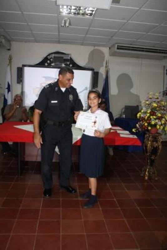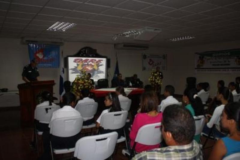 La Policía de Niñez y Adolescencia de la zona policial de Herrera realizó la mañana del martes 10 de diciembre la primera graduación del programa D.A.R.E, de la escuela Boca de Parita, con 15 estudiantes. El evento se realizó en las instalaciones del cuartel base de Chitré y contó con la grata presencia del gobernador de la provincia Elías Corro Cano el Mayor Alfredo Icaza y periodistas locales escritos y televisivos quienes entrevistaron a una de las estudiantes graduandas. Por otra parte el gobernador manifestó su complacencia por el trabajo que realiza la Policía con los programas de desarrollo humano preventivos que ejecutan en las escuelas en bien de la niñez y juventud de la provincia. |