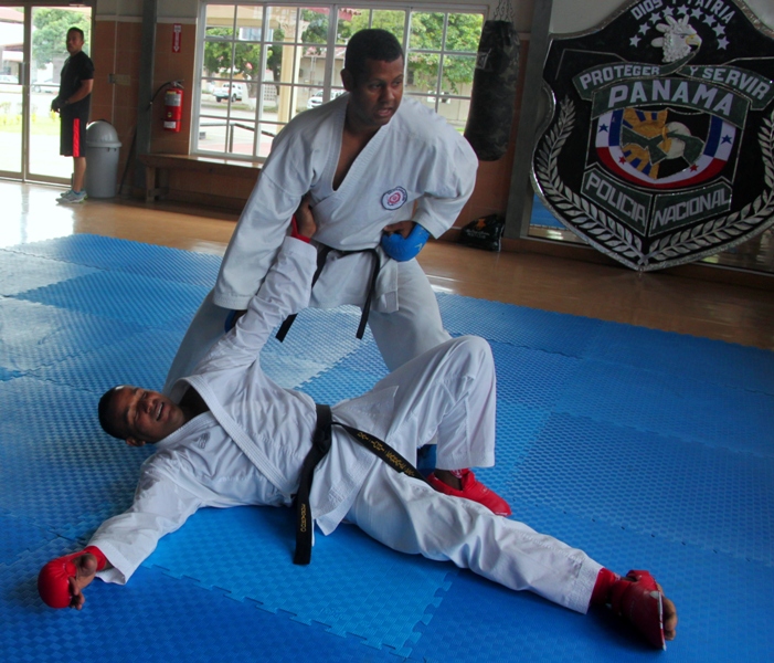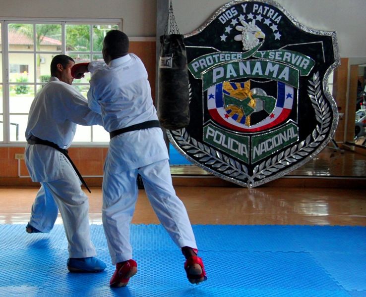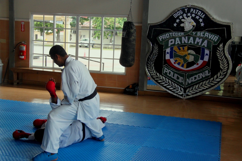 En el gimnasio de la sede policial en Ancón, el entrenador deportivo y cinta negra Joel Mendoza prepara desde hace cuatro meses a los siete (7) policías karatecas, quienes participarán en el torneo “Copa Chito Riu” a realizarse en Los Naranjos de Boquete, provincia de Chiriquí, el 18 de enero de 2014. Mencionado torneo lleva cuatro (4) años realizándose, otorgando el año pasado el título de campeón a Mendoza; quien es miembro no juramentado de la institución de seguridad, mientras que el título de subcampeón recayó en el agente Álvaro Ventura; que labora en la Dirección de Investigación Judicial. Mendoza, quien lleva tres años como entrenador de karate en el Centro de Enseñanza Superior (CES), sostiene que el éxito para ganar consiste tanto en la preparación física como en el apoyo recibido por parte de la institución. “Este es el segundo año en que la Policía Nacional participa del torneo de karate, gracias al apoyo logístico, con los debidos permisos y al tiempo de ensayo”. “Seguramente nos llevamos nuevamente los primeros lugares” indicó. El teniente Royvan Rudas de la UPC, los subtenientes Vladimir González de la DIJ, Gabriel Abrego del GAS, Elvis Delgado de los linces de Coclé; el cabo Carlos Rodríguez, de la Zona Metro Este; y los agentes Álvaro Ventura de la DIJ y Coralio Vega de Bienestar Laboral, son los uniformados que participarán de este torneo de artes marciales. De igual manera, Joel Mendoza expresó que el karate contribuye al autocontrol, la salud mental, a la buena condición física y a lucir un correcto porte policial. |