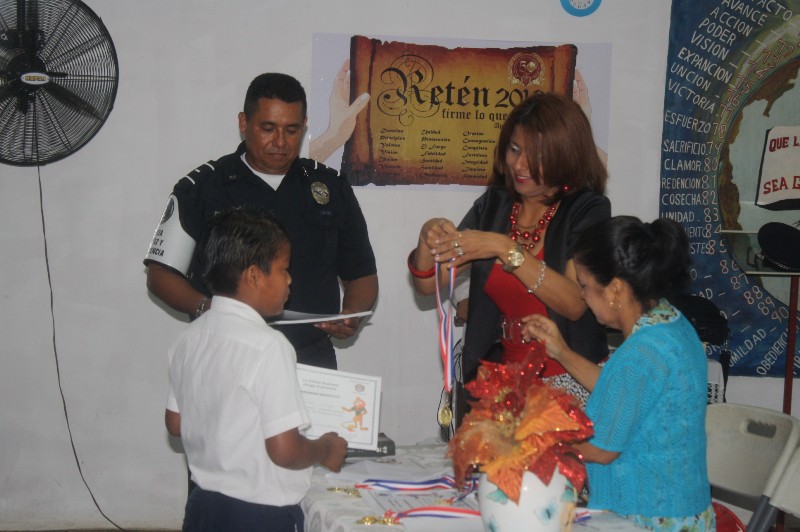 Unidades de la Policía de Niñez y Adolescencia de la 1ra zona policial de Bocas del Toro en la mañana de este viernes 13 de diciembre celebraron la graduación de 52 estudiantes en del programa DARE. Esta actividad se realizó en la escuela de Finca 44, donde se contó con la participación de la subdirectora Regional de Educación y el Mayor Ricardo Rodríguez en representación del Comisionado Javier Castillo Jefe de la zona policial. 52 estudiantes fueron los homenajeados en esta graduación, gracia a su desempeño y logros. El Subteniente Vicente Jaramillo encargado del programa DARE, otorgó diplomas y medallas a los más destacados durante todo el programa felicito además a cada uno de los jóvenes por su perseverancia y deseo de continuar adelante. |