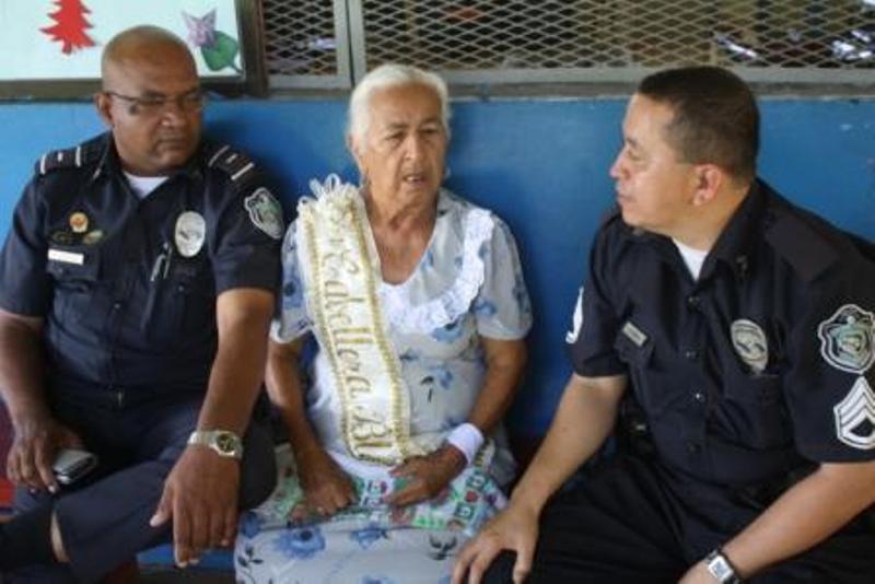 Grata fue la sorpresa para los uniformados al conocer que nos acompañaba la ganadora del certamen esa cabellera blanca la señora de 92 años Olivia Mendoza de Corrales, quien compartió con todos los presentes de esta fiesta.