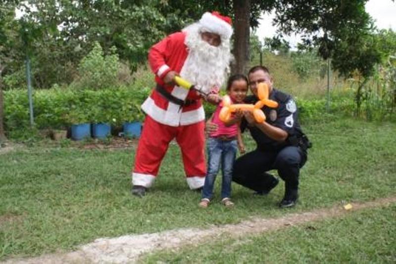 La alegría se dejo sentir a la llegada del Santa Claus personificado en una de las unidades de policía, como también en los regalos piñatas y juegos, pinta caritas y globos personificados otorgados a los niños.