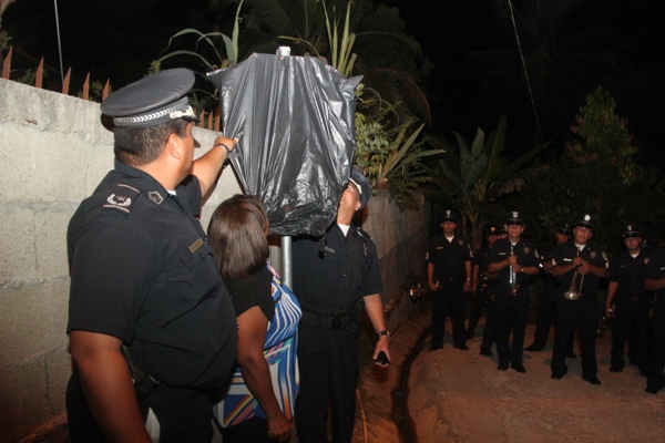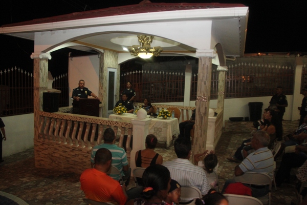 Eran las 7:00 pm y los moradores de La Primavera esperaban ansiosos la inauguración del programa número 136 en el área este de la capital, donde grandes y chicos acompañaron a las unidades policiales a realizar la develación de las placas y los timbres que daban muestra del trabajo que se venía realizando en coordinación policía- comunidad.