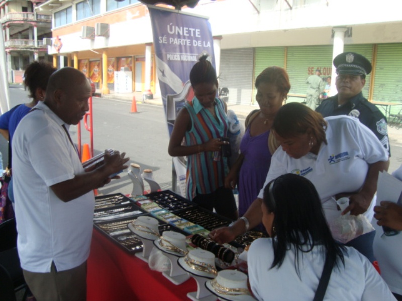 Unidades de la Zona de Policía de Colón, participaron en una feria que realizó Ampyme, con pequeños empresarios colonenses que tenían a la venta sus artesanías. La unidades aprovecharon la oportunidad para entregarle a los conductores y peatones volantes con medidas de seguridad que deben poner en práctica por las fiestas de fin de año. También orientaron y le recordaron a los asistentes que la Policía Nacional esta para Proteger y Servir, por lo que en las volantes aparecen los números de teléfonos que la instalaciones de la zona policial, las subestaciones y puestos policiales, para que llamen en casos de emergencia. La feria se realizó en la calle 11 avenida Del Frente. |