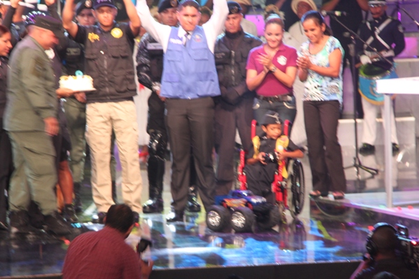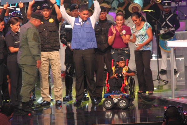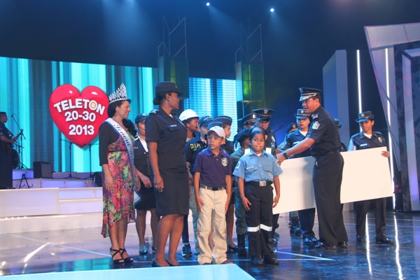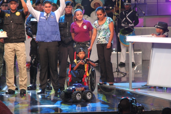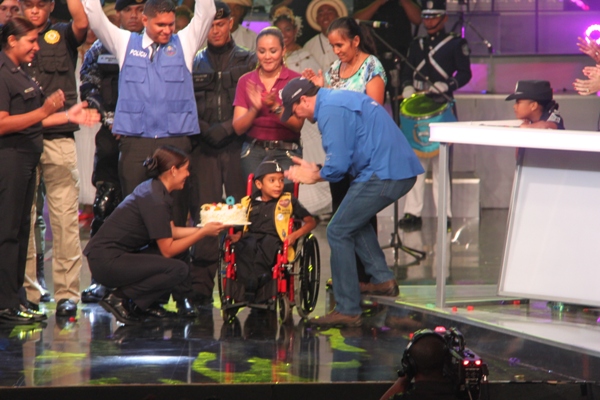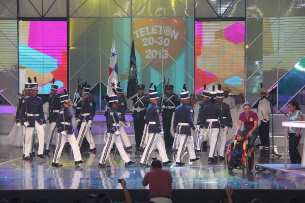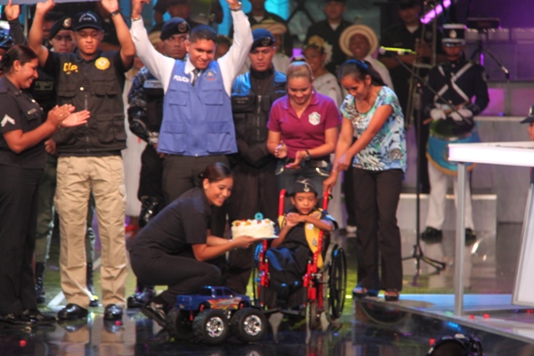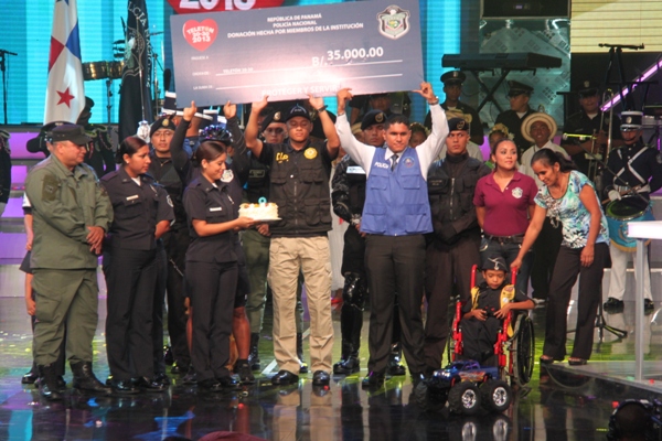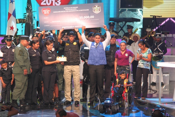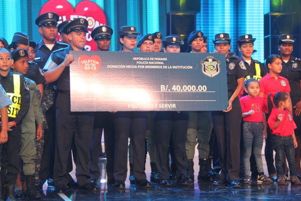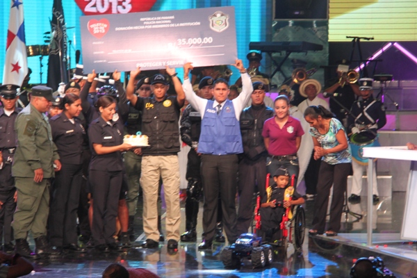 La Policía Nacional y sus colaboradores unidos bajo la administración del Director General de esta institución de seguridad, Julio Armando Moltó, donaron la cifra, record, de 135 mil dólares en la Teletón 20-30, donde el niño símbolo 2013 Adonis Ovalle, se mostró alegre y complacido por los detalles que los uniformados le entregaron: un pastel en escenario y un carro control remoto, todo esto en honor a su cumpleaños número nueve. En esta ocasión se anunció la nueva cifra que se reflejaba una vez la policía hizo su aporte. El Director General de esta institución de seguridad, dijo que año tras año los encargados del orden público, al igual que los funcionarios, realizan diversas actividades para apoyar esta noble causa, que va en beneficio de la niñez, y los más necesitados. Para la subcomisionada, Mirta Mosquera, Directora Nacional de Bienestar Policial y Familiar, estamos contentos por la generosidad de nuestra gente en respuesta al mensaje de esperanza de “Si tú crees, yo puedo”, “Cada uno de nosotros buscó ayudar y hacer la diferencia este año en respaldo a la Teletón” La edición número 28 del Teletón panameño recaudó este año poco más de 4 millones de dólares, dijo este domingo el presidente del club benéfico, Carlos García de Paredes. La recaudación, de 4,006,902 dólares, permitirá crear la red más grande de centros de medicina física y rehabilitación para niños y adultos panameños. El evento comenzó el pasado viernes donde la Policía Nacional hizo su primera donación como patrocinador oficial de 40 mil dólares, más tarde llegó con más sorpresas, donde la banda de música de la Policía Nacional, además del conjunto folclórico nos deleitaron con sus presentaciones; en horas de la tarde la delegación por parte de los cadetes del Centro de Enseñanza Superior (CES), y el drectorio Nacional encabezado por su Director General de esta institución de seguridad. Desde hace 11 años la Policía Nacional es patrocinador de la Teletón 20-30, en el que hombres y mujeres hacen sus aportes organizando multiples actividades con el fin de recaudar fondos para esta noble causa. |