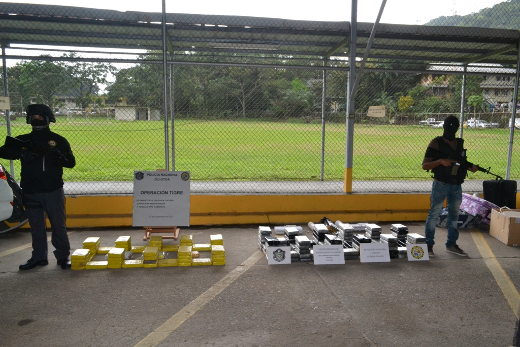 Unidades de investigaciones sensitivas de la Dirección de Investigación Judicial decomisaron la cantidad de 53 kilos de la droga conocida como cocaína en el Distrito de Santa Isabel en la Provincia de Colón durante un operativo antidrogas. La diligencia que contó con la participación de las unidades Tácticas Antidrogas de la Policía Nacional se desarrollo tras vigilancia y seguimiento según información obtenida de un grupo de sujetos que transportaban sustancias ilícitas a bordo de un vehículo por la vía principal del Rio Fato. En esta misma vía se sitúa un auto 4Runner color plateado que salía de un área montañosa con actitud sospechosa. El vehículo fue retenido por las autoridades, abordo tres sujetos de nacionalidad panameña de 30, 33 y 35 años edades. Verificando el lugar de donde salió el auto se hallaron sacos ocultados entre la hierba, que dentro mantenían los paquetes de tamaño regular y forrados con cinta adhesiva con contentivo de polvo blanco que arrojó a la droga conocida como cocaína tras la prueba de campo preliminar realizada por la Fiscalía de Drogas. En otro caso En horas de la madrugada, unidades de narcótico de la DIJ incautaron 90 kilos de cocaína en dos vehículos con doble fondo en el corregimiento Juan Díaz. Por este caso se retuvo tres vehículos y se allanó un local que era utilizado como bodega en este corregimiento. Los vehículos se mantenían dentro del local donde también se encontraron materiales y herramientas de embalaje de drogas. Un sujeto de nacionalidad colombiana fue retenido por las unidades y puestos a órdenes de las autoridades judiciales para su investigación. La Dirección de Investigación Judicial en el mes de noviembre realizó la última incineración de droga donde se destruyeron 11,8 toneladas de estupefacientes incautadas por los diferentes estamentos de seguridad. Por ello, la Policía Nacional continúa reforzando sus operativos y estableciendo nuevas estrategias para contrarrestar el tráfico de drogas por el territorio nacional. |