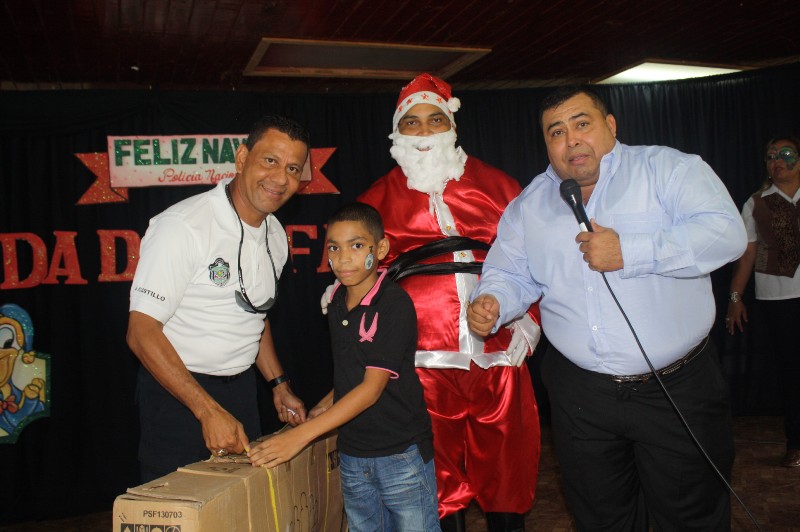 Unos 300 niños se hicieron presentes en la mañana de este miércoles en la fiesta de Navidad que llevó a cabo la Zona de Policía de Bocas del Toro para los hijos de los policías. Los niños se hicieron presentes en esta fiesta, donde se divirtieron y gozaron. En esta actividad los niños se divirtieron con las pintas caritas y juegos bufos junto a Santa Claus y los payasitos, mientras que los más grandes se divirtieron en la piscina. Estuvo presente el Comisionado Javier Castillo Jefe de la 1ra zona policial que obsequio a cada uno de los niños regalos. |