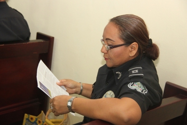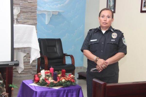 La Comisionada Aponte, explicó la importancia de estas charlas que además de ofrecerlas a los policías, también son impartidas en todas las dependencias de esta institución de seguridad a nivel de todo el país. La oportunidad fue propicia para realizar la bendición de coronas.