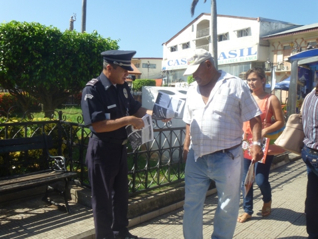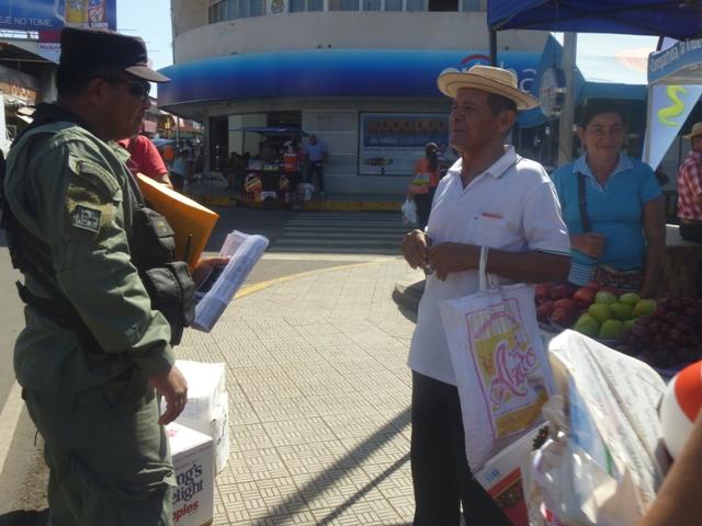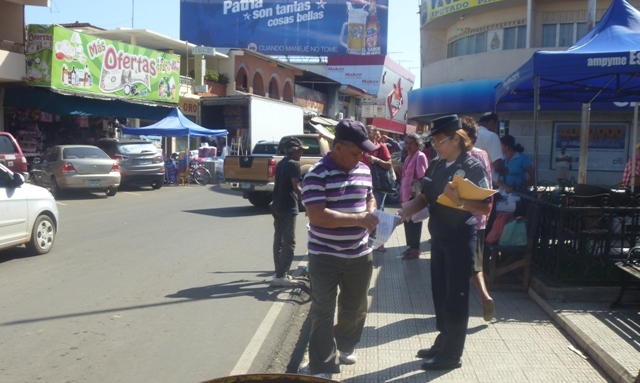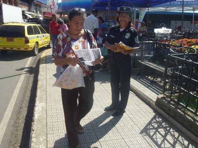 Unidades de la oficina de Seguridad Ciudadana de La Zona de Policía de Herrera al mando de la Teniente Doris Bonilla, realizaron un volanteó por el área central del comercio chitreano.