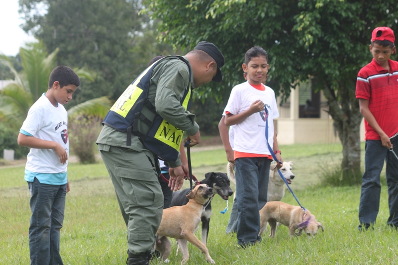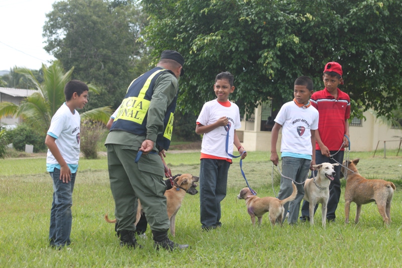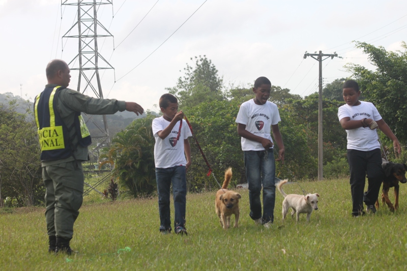 Niños de varias comunidades del corregimiento de Chilibre pertenecientes al Grupo Juvenil Canino (Grujucan) que organiza la Policía Nacional compartieron una mañana especial junto a sus canes y uniformados que laboran en la Zona Policial Metropolitana Norte. El punto de encuentro fue en Chilibre Centro, donde los niños y niñas demostraron los conocimientos adquiridos sobre el adiestramiento básico de sus mascotas, mediante el cual aprenden obediencia y algunas destrezas. “Estos niños no solo pasan un rato divertido con sus perros, sino que también mediante este programa Grujucan, se crea un vinculo aún más fuerte entre ambos”, expresó el sargento primero Eloy Ruiz; ya que se le enseña al niño a respetar y a no maltratar a los animales, que además de ser excelentes guardianes y amigos. Pero a su vez aprenden otros valores como la amistad, el trabajo en equipo, la solidaridad, la honradez y la honestidad. El sargento Ruiz; quien es instructor canino explicó que también se les enseña sobre la historia del perro y de su contribución en la sociedad humana; además de las técnicas para el aseo y alimentación de sus canes. La Policía Nacional desarrolla diversos programas que buscan ofrecer a los niños y jóvenes actividades recreativas que los educan, refuerzan sus valores y los aleja de las pandillas y drogas.