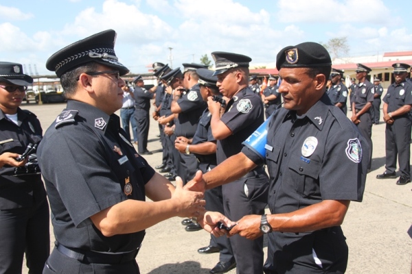 Hay motivos para celebrar en la Policía Nacional. En una ceremonia protocolar se realizó el ascenso a 3 mil 561 unidades policiales, quienes ahora tienen una mayor responsabilidad, los rangos van de mayor a cabos segundos. El Director General de la Policía Nacional, Julio Armando Moltó, presidió el ascenso junto a miembros del directorio general y personal por parte del Cuerpo de Bomberos de Panamá. El Director destacó el grado de responsabilidad, disciplina y entrega que estos policías han demostrado, por lo que hoy la institución les reconoce su trabajo. “Son hombres y mujeres que trabajan las 24 horas del día prácticamente, junto a otros sectores de la comunidad en función de garantizar la seguridad de los y las panameños”, afirmó Moltó. "Este ascenso no les tocaba, se los ganaron, se lo merecen, cada uno de ustedes han pasado sus exámenes, sus reportes pasaron por la junta disciplinaria, ahora todos son ejemplos para su familia y demás compañeros", continuó el jefe de la Policía Nacional, en su intervención. "Les pido siempre dejen el nombre de la institución en alto, sabemos no es un trabajo fácil, sacrificar su tiempo, dejar a sus familiares, para cuidar otras personas que no conocen, pero así es esta profesión, los exhorto que continúen la labor y felicidades a todos", concluyó. En medio del acto se dejó oír que el ascenso “significa un reto más para todas las unidades en seguir trabajando por la seguridad por la comunidad, seguir organizándose mano a mano con la población, más en nuestro trabajo que es preventivo para seguirle brindando seguridad a todo un país. Como es tradicional en una ceremonia de ascenso, los nuevos rangos fueron bautizados con agua de un carro cisterna lo que marca el inicio de una nueva etapa laboral. Ahora sus metas son seguir subiendo en grados policiales y cargos dentro de la Institución y servir mejor a la comunidad. En total 1 mayor, 30 capitanes, 292 tenientes, 348 subtenientes, 815 sargentos primeros, 634 sargentos segundos, 490 cabos primeros, 951 cabos segundos. Estos actos continúan realizándose en los diferentes departamentos de la Policía Nacional cada 4 años. Esta vez la actividad tuvo lugar en la Sede de esta institución de seguridad, ubicada en Ancón.