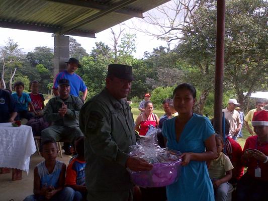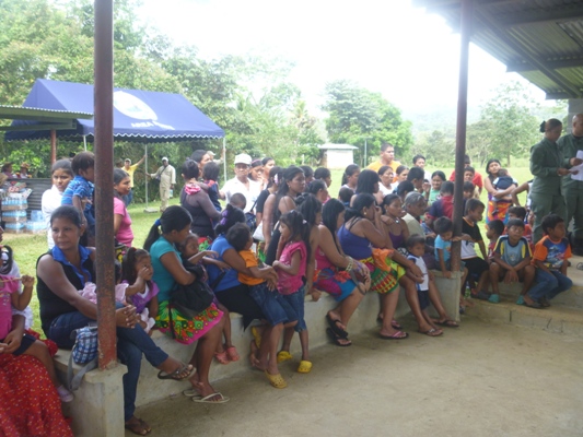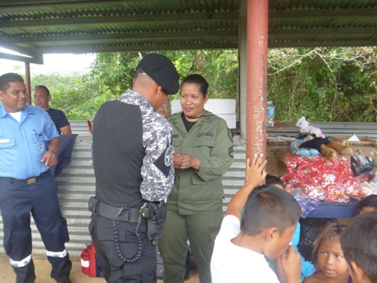 Las unidades policiales se trasladaron vía fluvial, donde los esperaban un total de 300 personas quienes 139 son niños y niñas, sus padres se dedican a la agricultura, cuentan con una sola escuela, a la cual muchos infantes llegan a través de su único transporte el cayuco, además no mantienen servicios de salud, sus viviendas no son las más adecuadas.