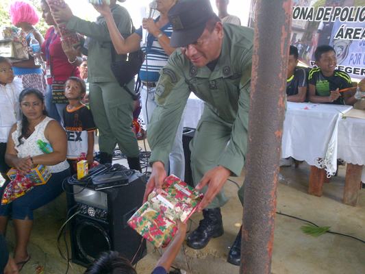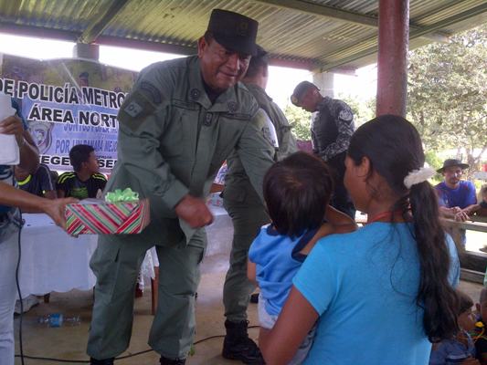 Las unidades policiales pertenecientes a la Zona de Policía Metropolitana Área Norte, realizaron una labor social en la comunidad de San Juan Pequeni, quienes llevaron gira médica, donación de ropa, bolsas de comida, juguetes, fiesta para los niños y una cena navideña.