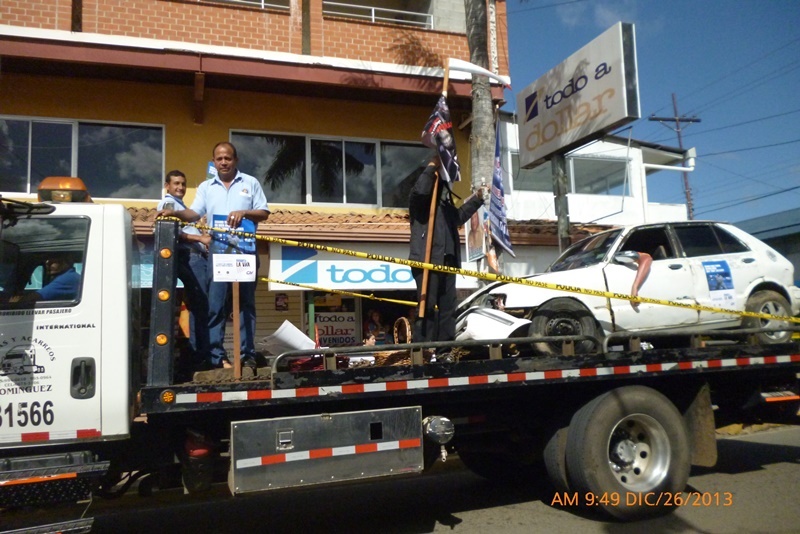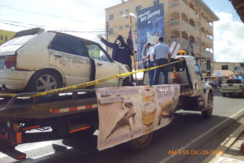 La caravana recorrió las principales calles del distrito de Las Tablas, donde se mostraron dramatizaciones de situaciones que se pueden dar a causa de la ingesta excesiva de alcohol, de igual forma la 7ma Zona de Policía de Los Santos en conjunto con otras entidades se unieron para lograr un solo fin el brindar a la población tableña y visitantes información de efectos, causas y recomendaciones para aquellas personas que son víctimas del alcohol. |