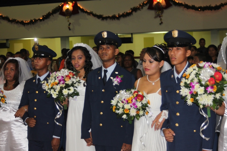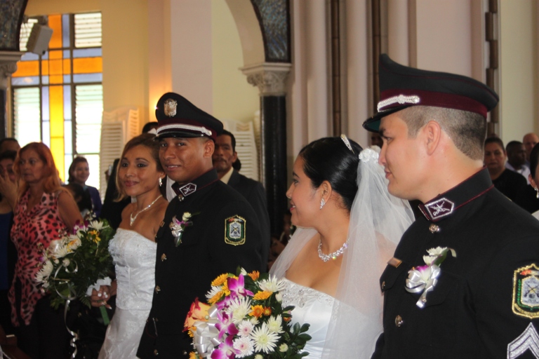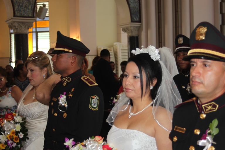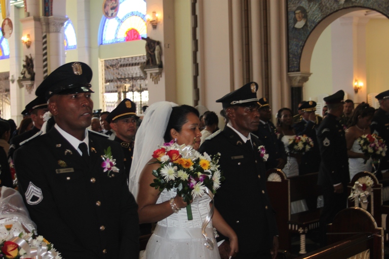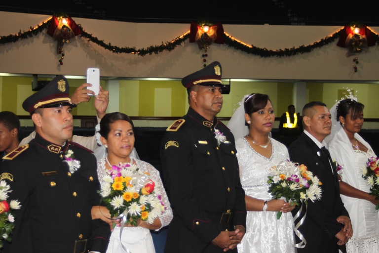 Un total de 18 parejas, conformadas por funcionarios de diferentes estamentos de seguridad del estado, unieron sus vidas en el sagrado vínculo del matrimonio a través de sendas ceremonias realizadas en la Iglesia Católica Don Bosco y el Templo Evangélico Hossana…