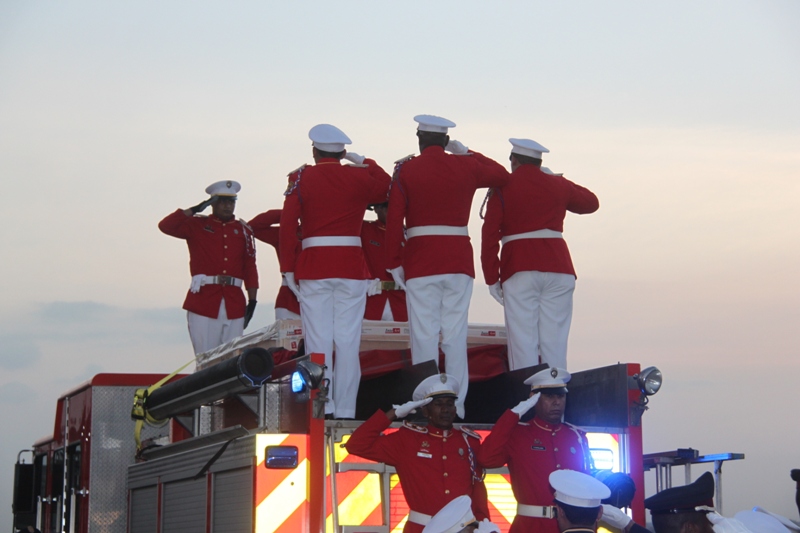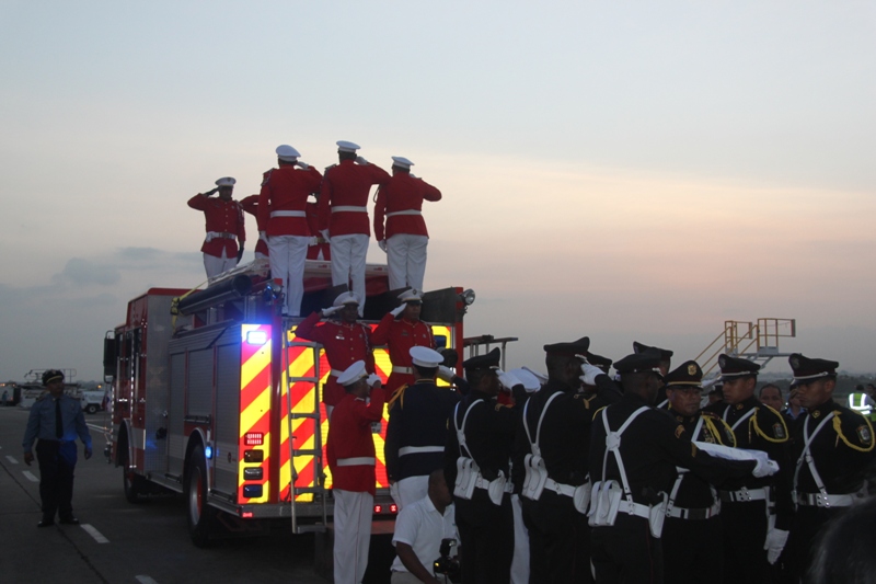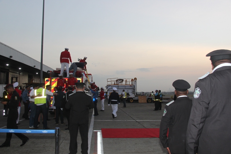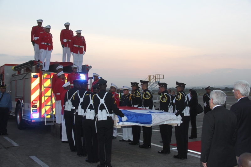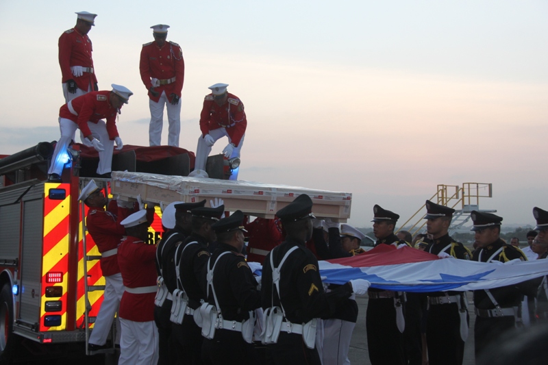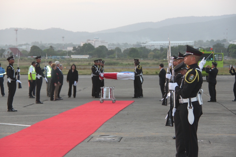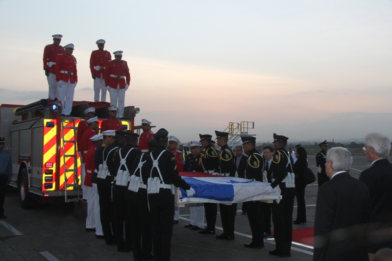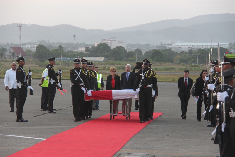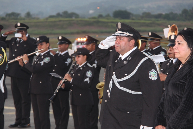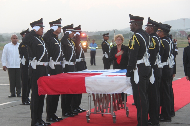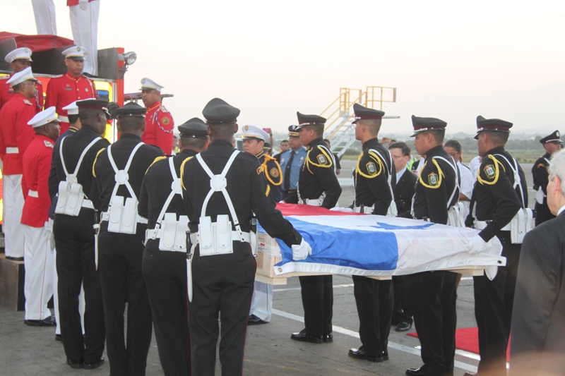 Al ritmo del repicar del tambor de la Banda de Música de la Policía Nacional, fue recibida en el Aeropuerto Internacional de Tocumen, la bandera que en 1964 portaron con orgullo los estudiantes de la gesta patriótica del 9 de enero, en un intento de izar nuestro pabellón tricolor en la Zona del Canal en reclamo de nuestra soberanía. Una vez ya en tierra, proveniente de España; donde fue restaurada por especialistas, es escoltada con todos los honores por miembros del Servicio de Protección Institucional (SPI), acompañadas por las notas del Himno Nacional y de la tonada Panamá Primero, interpretadas por la Policía Nacional. En la comitiva estuvieron presentes el Ministro de Gobierno, Jorge Ricardo Fábrega y Rimsky Sucre, presidente de la Asociación del Instituto Nacional de 1964. Posteriormente fue trasladada por el Benemérito Cuerpo de Bomberos hacia el Centro de Capacitación Ascanio Arosemena de la Autoridad del Canal de Panamá, donde será expuesta al público a partir del 9 de enero, como parte de las actividades en conmemoración de los 50 años de esta acción heróica. |