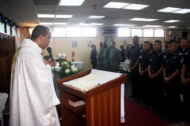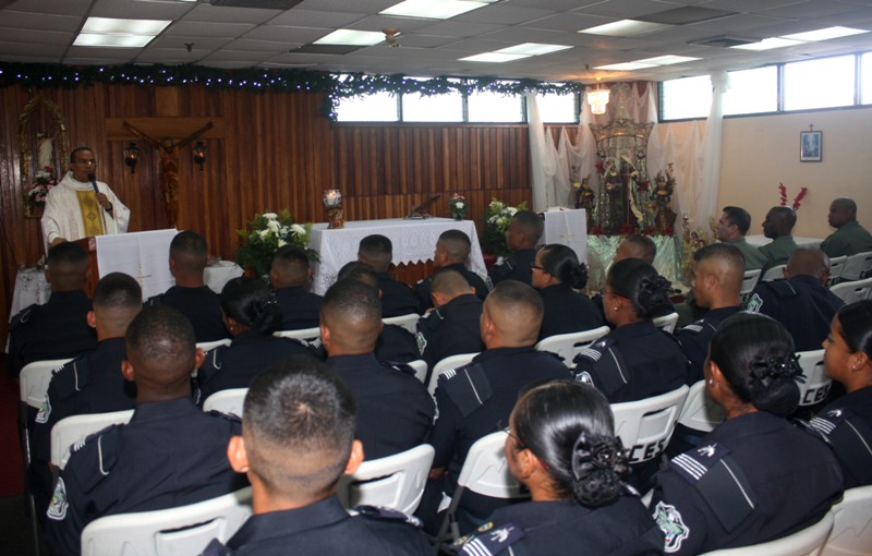 La Iglesia Católica a través del sacerdote Julio Pinilla realizó la bendición de los anillos y una Eucaristía a favor de los 22 alféreces, todos ellos graduandos del Centro de Enseñanza Superior Doctor Justo Arosemena actualmente ubicado en el antiguo fuerte Sherman en la provincia de Colón… En el acto que se llevó a cabo en la Capilla Santa María Madre de Jesús, estuvieron presentes el Subcomisionado Ezequiel Carrizo, Director del Centro de Enseñanza Superior además de los Capitanes H. Arguelles, F. Asprilla y R. Rodríguez, así como familiares y allegados de los estudiantes policiales. El próximo 22 de enero, los graduandos obtendrán formalmente su título universitario avalado por la Universidad de Panamá, que los acredita como Licenciados en Administración Policial además del rango de Subtenientes de la Policía Nacional de Panamá. La mencionada Eucaristía también elevó ruegos a favor de la paz mundial, en la cual estos nuevos oficiales de la Policía Nacional de Panamá, tendrán que realizar esfuerzos a fin de aportar su granito de arena en esta lucha de carácter mundial.