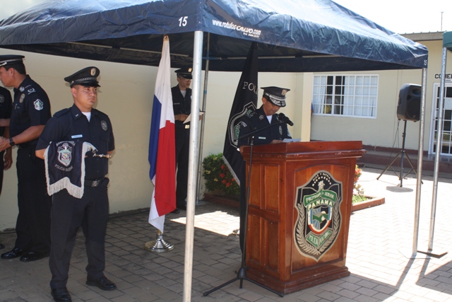 Este evento conto con la presencia del Gobernador de la provincia Lic. Elías Corro Cano, el Alcalde Manuel Solís, y oficiales de la plana mayor como el Inspector General, Comisionado Didier de Gracia, el Comisionado Miguel García Director Nacional de Operaciones, Comisionado René Moses, Director Nacional de Recursos Humanos, Comisionado Erick Amaya, Director Nacional de Transporte, los jefes de Veraguas Comisionado Carlos Rumbo y el de Los Santos Miguel Ávila. Correspondió al comisionado Didier De Gracia hacer entrega de manos del comisionado Roger Franco M del Banderín de Zona al nuevo jefe Subcomisionado Ismael Herrera. Y la ocasión fue propicia para hacer reconocimiento a 10 unidades sobresalientes que se han destacado por su labor de la gestión del Comandante Franco. |