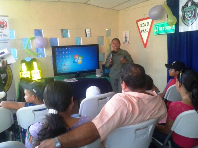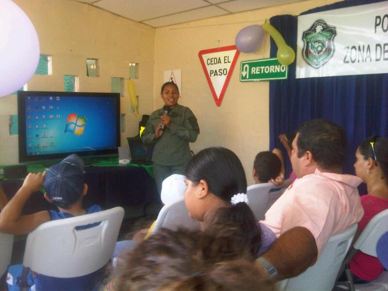 La Dirección Nacional de Operaciones de Tránsito en conjunto con la Zona Policial de Herrera, participó este viernes 17 de enero con un stand, en donde se impartieron charlas de Educación Vial, en conmemoración de la Feria de San Sebastián de Ocú. Esta actividad estuve a cargo de las Tenientes Abelarda Gonzáles y Maite Chiam de la Dirección Nacional de Operaciones de Tránsito asi como tambien de unidades de la Zona Policial de Herrera, quienes tienen como objetivo concientizar a niños y adultos en materia de seguridad y prevención en las vías. Con estas actividades se fortalece el compromiso de la Policia Nacional a traves del Tránsito de educar a la población con habitos y actitudes positivas en seguridad vial, que les permitan comprender y respetar las leyes, reglamentos y normas vigentes del tránisto. |