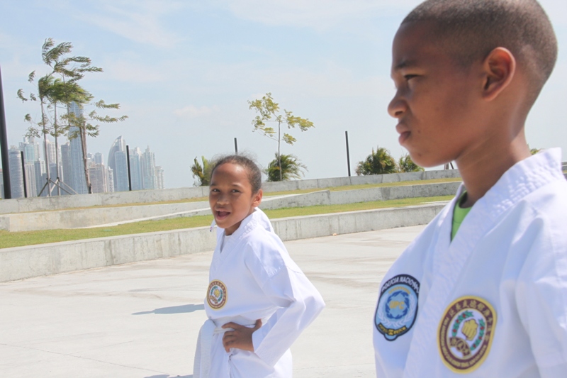 El sábado 18 de enero la escuela de Karate Tang Soo Do fundada por la Unidad Preventiva Comunitaria cumple un aniversario más. Este aniversario se llevo a cabo con una práctica en las inmediaciones de la Cinta Costera donde también se le hizo un brindis a los niños que participan de tan importante programa y de su innumerable esfuerzo, recibiendo así sendos reconocimiento por parte de la Organizacion Koreana de Tang Soo Do y otras competencias. Tras explicar que a través de este deporte se busca promover las buenas condiciones físicas de los niños, añadió que a través de esta actividad se pueden desarrollar las partes psicomotoras del niño y además ayudarlos en materia de disciplina y obediencia a sus padres, maestros y personas adultas. “El karate también los aleja del ocio de las calles, así como de las pésimas influencias de las malas compañías que pudieran tratar de atraerlos hacia el mundo de la violencia, el pandillerismo y las drogas”, comentó el Teniente Rudas. Estas actividades se dan como parte de los programas de acercamiento que lleva a cabo la institución con todos los adolescentes del país, con el objetivo de dar a conocer la misión fundamental de Proteger y Servir. |