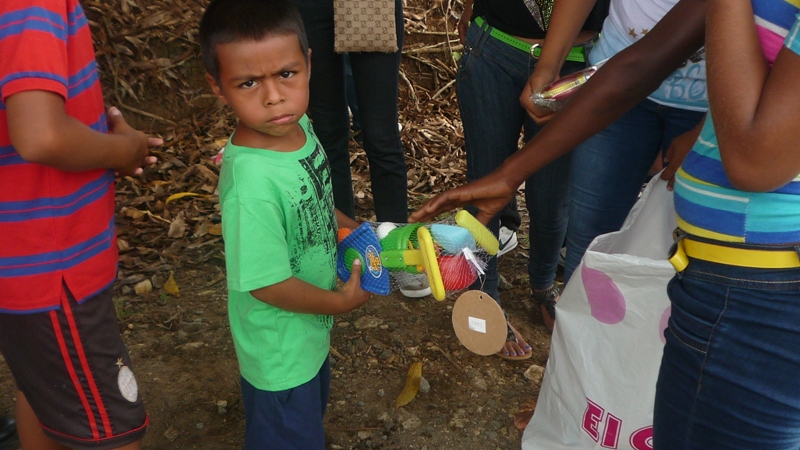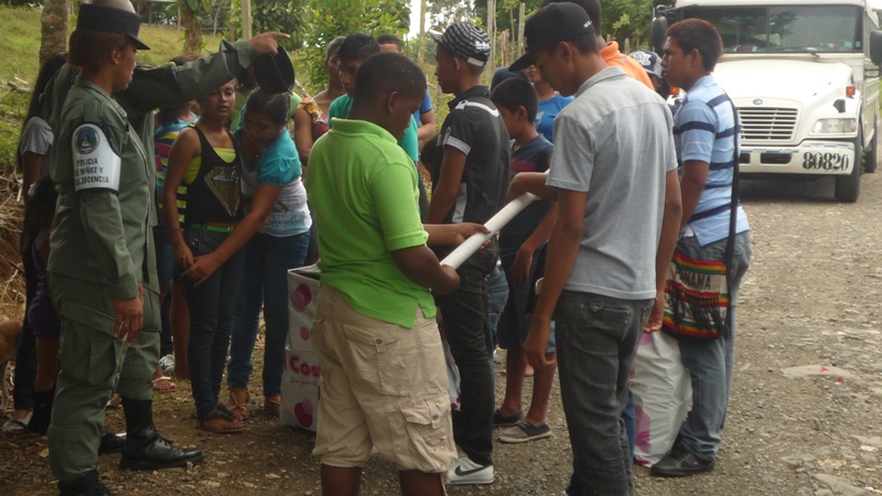 Unidades de la tercera zona policial de Colón, acompañados de un grupo de jóvenes del colegio Instituto Profesional y Técnico de Colón que pertenecen al grupo de Jóvenes Contra el Delito llevaron alegría este lunes 20 de enero a niños de la comunidad de La Cauchera sector del Lagos en Ciricito. Los niños que estaban acompañados de sus padres pasaron momentos de alegría cuando la subteniente Janea Ibarra, de la policía de Niñez y Adolescencia acompañada del cabo Luis Moreno y los jóvenes, les repartían juguetes además de golosinas. La señora Matilde moradora del lugar agradeció a la Policía Nacional y a los estudiantes del programa Jóvenes contra el Delito, por tomarlos en cuanta para traerle juguete a los niños. Luego de la actividad los jóvenes del programa Jóvenes Contra el delito y las unidades policiales fueron recibidos en el l Mac Donalds, de la calle 13 avenida Meléndez. La Policía Nacional con este tipo de actividades busca llevarle alegría a niños de escaso recursos y que viven en lugares apartados de la provincia.