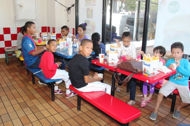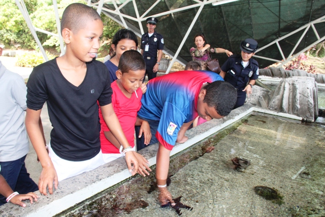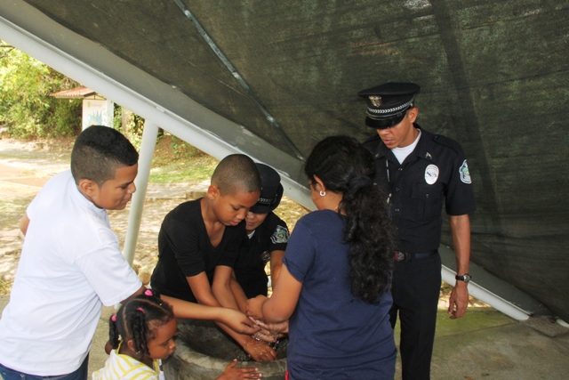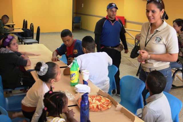 Los niños y niñas participaron de una excursión organizada por la Dirección Nacional de Bienestar Policial y Familiar, como parte de las actividades recreativas y culturales que ofrecen a los hijos de los miembros de la Policía Nacional. Desde temprano fueron citados en la sede principal de la Policía en Ancón, donde abordaron un vehículo que los transportó hacia una de las sucursales Domino´s Pizza en la que fueron instruidos en el arte de la preparación de pizzas, antecedidos de las palabras de bienvenida, finalizando la experiencia con la entrega de certificados, algunos regalos por parte del restaurante y por supuesto, el deguste de sus pizzas. Inmediatamente y en compañía de cuatro uniformados, camarógrafos y una trabajadora social de la institución monitoreaban la siguiente parada en Punta Culebra, Amador. Al llegar fueron recibidos y atendidos por guías que a través de senderos y exhibiciones acuáticas explicaron la vida animal silvestre, terrestre y marina; la importancia de su conservación y respeto. La alegría de los excursionistas era evidente. No paraban de preguntar acerca de los distintos tipos de árboles, los osos perezosos, las iguanas, las aves, las termitas, las estrellas de mar, los gusanos de mar y las tortugas carey. La jornada calurosa y dinámica continuó hacia una de las sucursales de Mc Donald, donde los infantes y adolescentes hicieron uso apropiado de las instalaciones y consumieron sus alimentos. Luego, fueron regresados a la sede policial, donde fueron recogidos por sus padres. Con estas actividades la Policía Nacional procura el bienestar de los uniformados y sus familias, creando espacios para compartir, promover y reforzar los lazos familiares. |