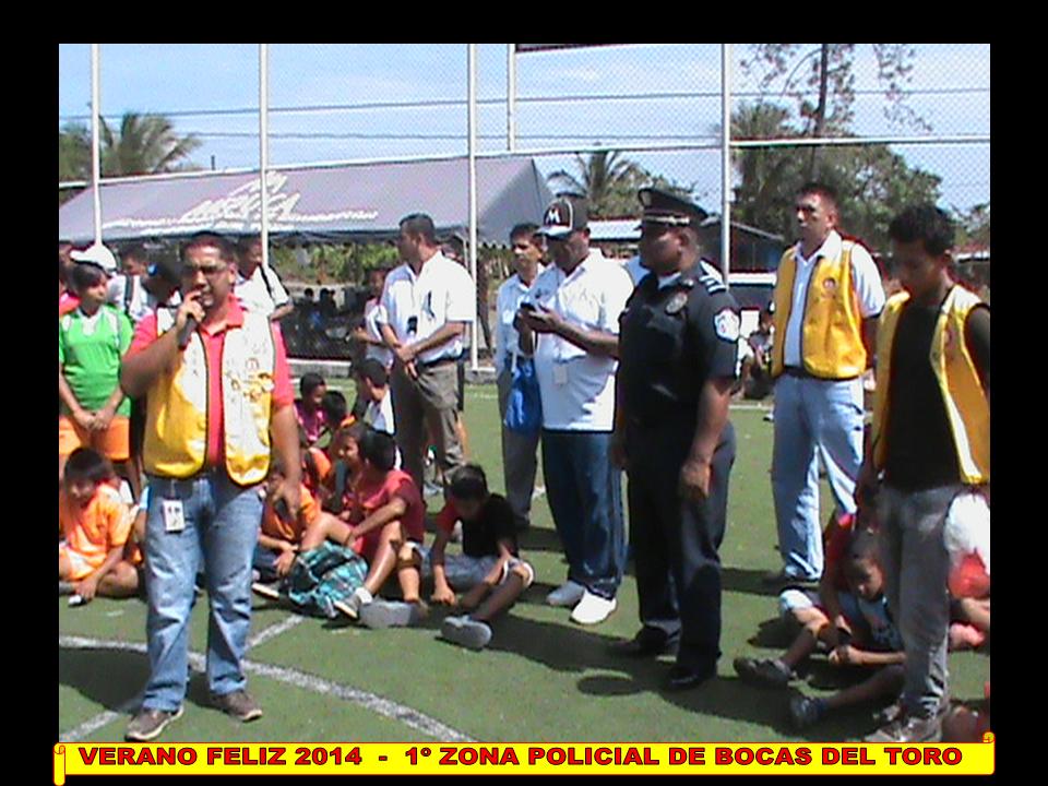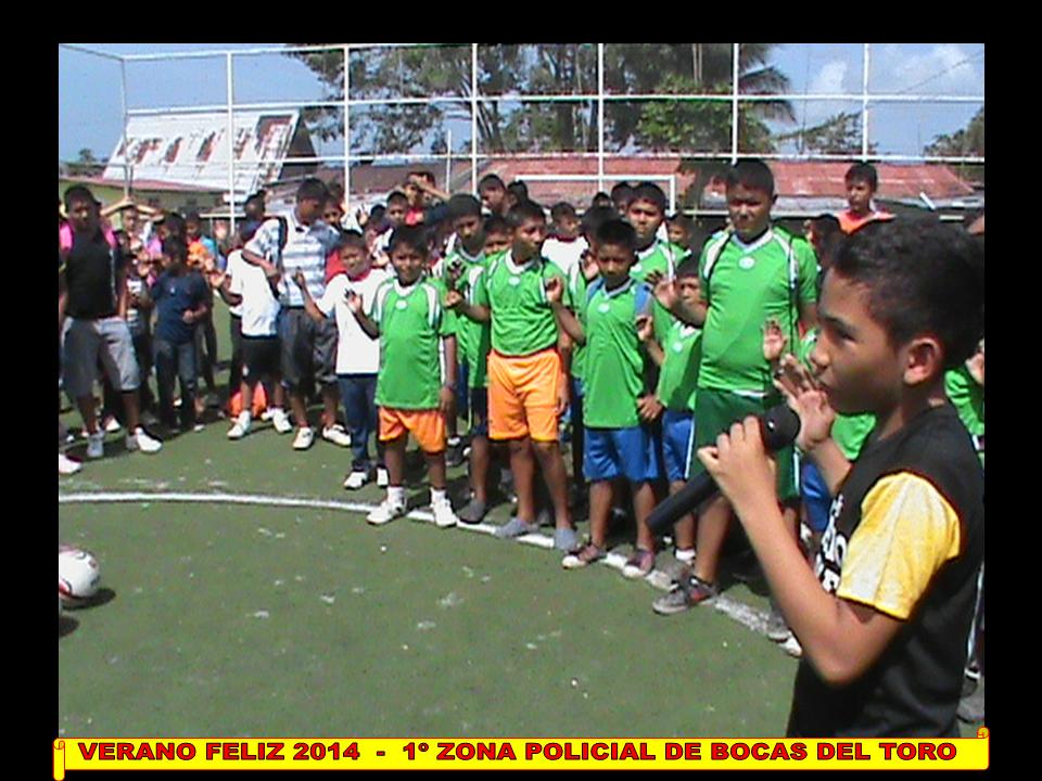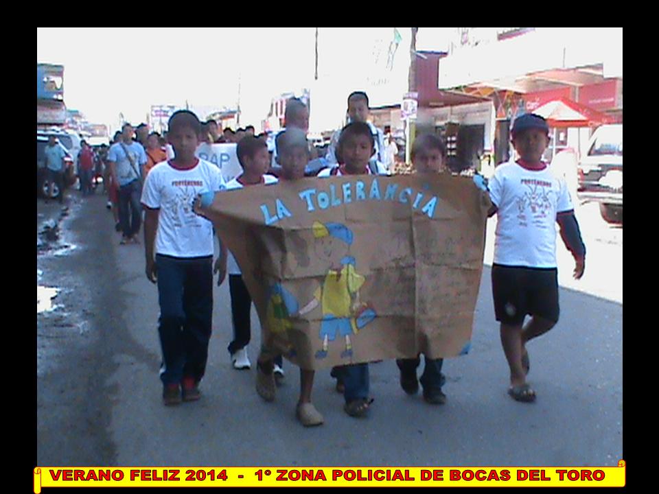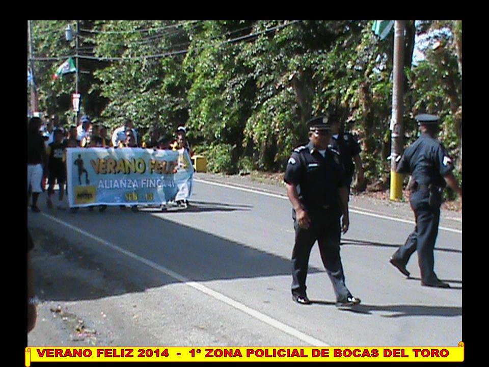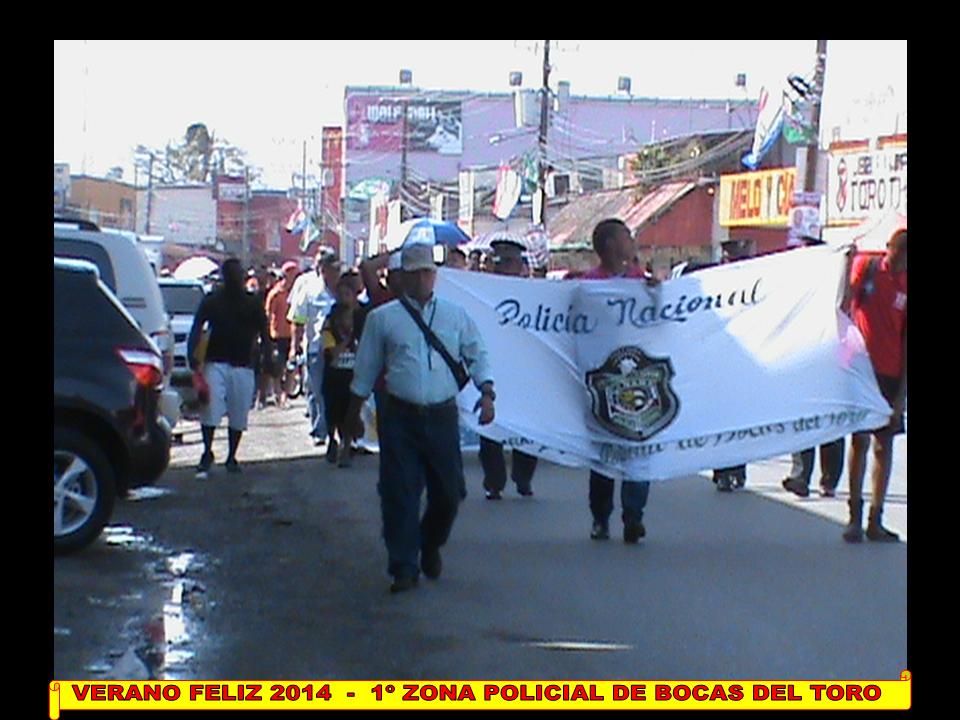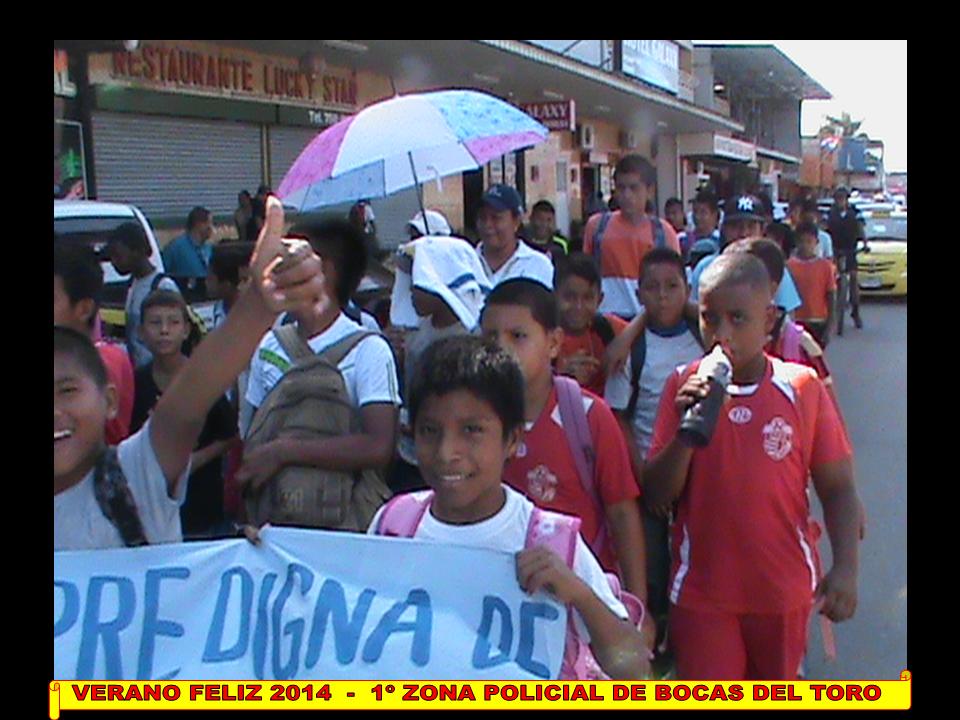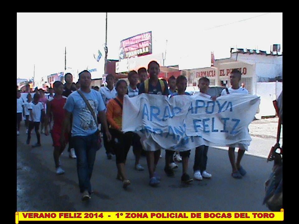 La Oficina de Seguridad Ciudadana de la 1º Zona Policial de Bocas del Toro, inauguró en la mañana de este jueves 23 de enero el Verano Feliz 2014, con mas de 400 niños y niñas los que participan del evento. En horas de la mañana se realizó una marcha que partió desde la estación policial de Changuinola, recorrió la Avenida 17 de Abril y culminó frente a la entrada al Aeropuerto Manuel Niño en Changuinola. Para este año se cuenta con un grupo de Karate básico dirigido por el profesor Ismael Huthson, se cuenta con un nuevo Grupo Juvenil Canino “GRUJUCAN”, donde participan unos 20 niños y niñas acompañados por sus padres y el torneo de fútbol sala donde participan unos 20 equipos de las categorías sub. 13 y Sub. 15, los cuales se estarán enfrentando durante todos estos días hasta el próximo 20 de febrero de 2014, día de la gran final. La Policía Nacional en Bocas del Toro tomó la iniciativa y decidió llevar a cabo este proyecto el cual esta siendo respaldado por algunas instituciones como el MOP, PANDEPORTES, la ANAM y algunos comerciantes de Bocas del Toro. |