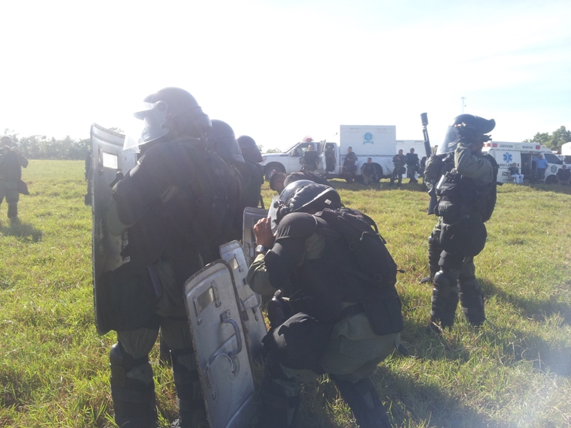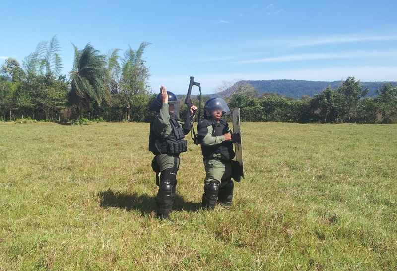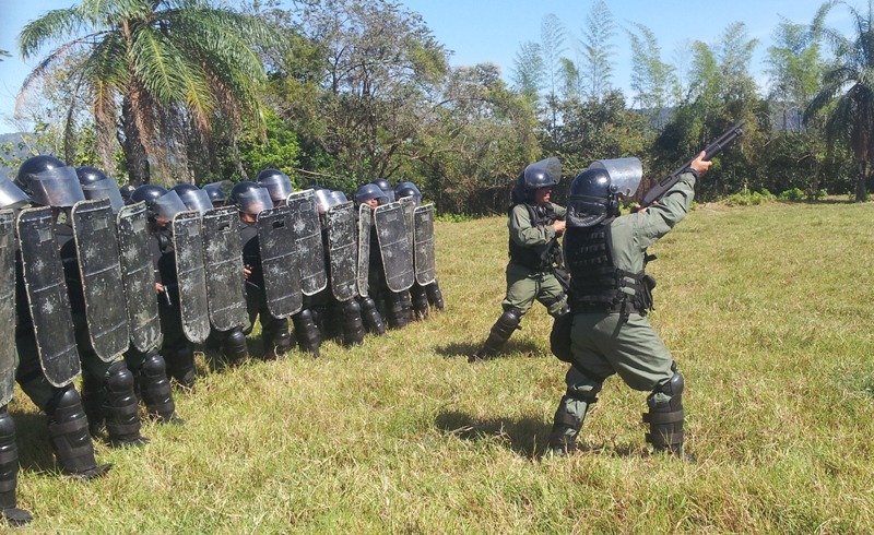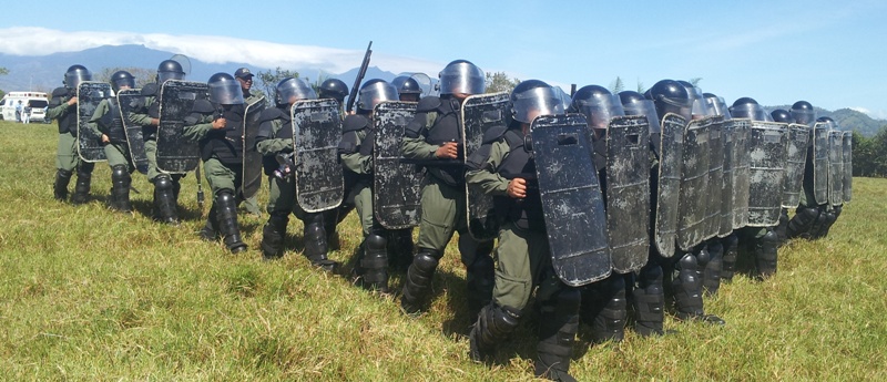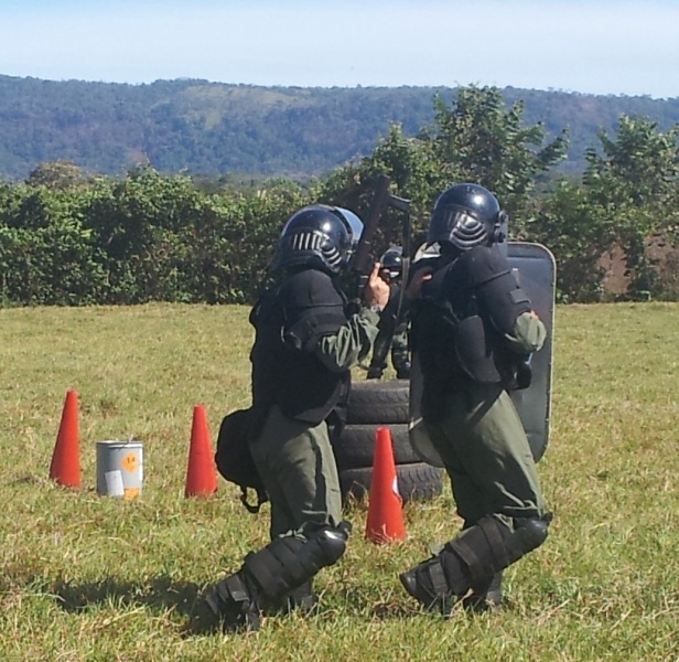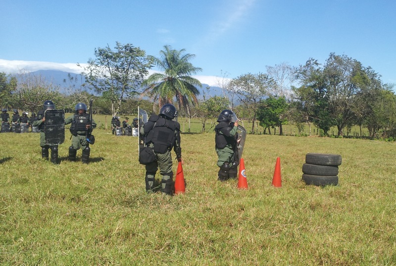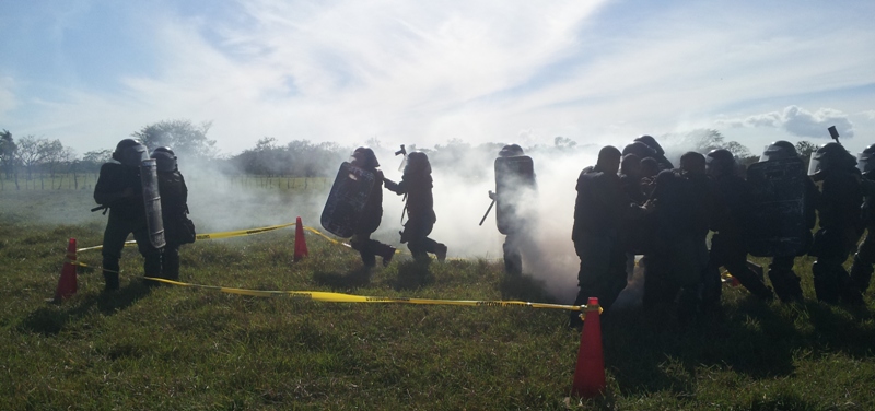 Un total de 45 agentes policiales de la Unidad de Control de Multitudes (U.C.M.), de la Zona Policial de Chiriquí, están participando de un seminario denominado “Actualización en Orden Público, Aspectos Legales, Supervición, Liderazgo y Don de Mando”, con una duración de dos semanas. Estas unidades están siendo instruidas por el capitan Leandro Ortíz, el Sgto. 2do. Edgar Galáctica y el Cabo 2do. Celestino Mendoza, sobre el cumplimiento de las órdenes de despejar las calles y avenidas obstruidas por manifestantes; igualmente, en la utilización de agentes químicos, con sus respectivos lanzadores; escudos y municiones de impacto no letal, entre otros En el terreno se practican los distintos tipos de formaciones; al igual que la manera de ingresar a un penal, al momento de un motín o a efectuar una requiza; también cómo equiparse en áreas contaminadas; familiarización con el químico y como despejar una barricada. El Capitan Ortíz manifestó que es de suma importancia que todas las unidades estén en constante capacitación, para ser más profesionales al momento de realizar sus labores. |