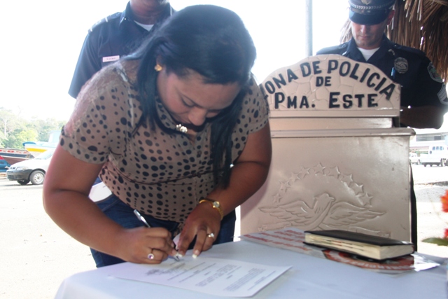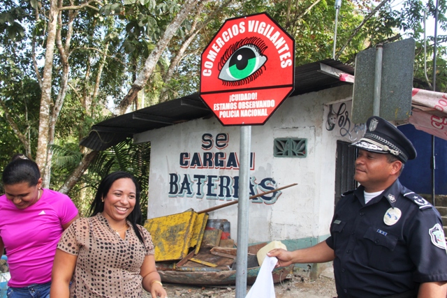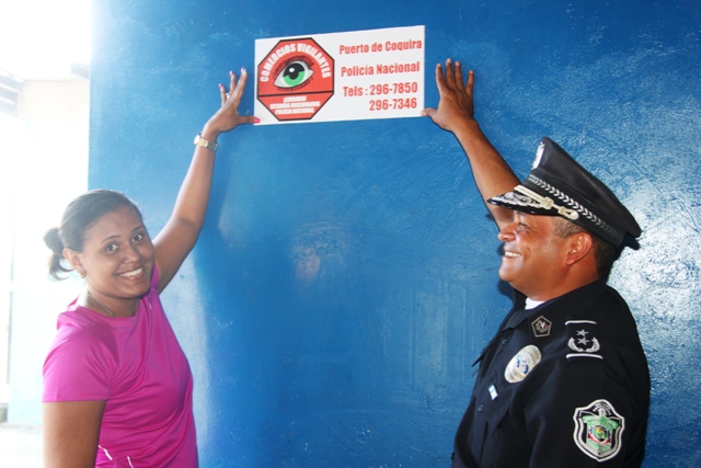 El primer programa de Comercios Vigilantes fue inaugurado en la tarde de este martes 28 de enero en el Puerto de Coquira, ubicado en el distrito de Chepo, con éste suman mil doscientos ochenta y tres (1,283) locales a ésta iniciativa. Reunidos más de 30 asistentes, entre vecinos vigilantes, líderes comunales y personal uniformado de la Policía Nacional celebraron el “inicio de un trabajo solidario con la comunidad de Chepo” así lo señaló el Comisionado Miguel García, Director Nacional de Operaciones de esta institución de Seguridad Pública. Mientras que Susana Coronado, una ciudadana preocupada por la seguridad en este sector asumió liderar de la mano de su suplente Beisy Broce esta iniciativa. Ella es pescadora y vendedora local de marisco. Motivada por el teniente Nicolás Guzmán y por sus compañeros comerciantes juró comprometerse en colaborar contra el delito. Acto cumplido ayer delante de los presentes. Por otro lado, el Subcomisionado Juan Carlos Cerezo Jefe de la Zona de Panamá Este en su pequeño discurso felicitó a todos por atreverse a unir esfuerzo en la lucha contra el delito, preocupados por las situaciones dadas en el puerto. Cerca de donde se realizó el acto se encontraba el señor Américo Abadía de treinta y nueve años (39) de edad y diecisiete (17) años de pescar en el lugar, quien también dice que en el puerto se han visto actos sospechosos que atentan con la seguridad del área por lo que espera más apoyo policial en febrero y mayo, meses donde se incrementa el movimiento comercial en ese sector. Antes de la develación del letrero de Comercios Vigilantes, los presentes fueron informados acerca del congreso de participación ciudadana a realizarse en el domo de la Universidad de Panamá en Curundu, los días 6 y 7 de febrero. |