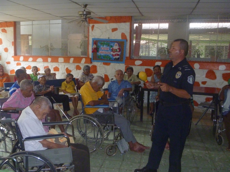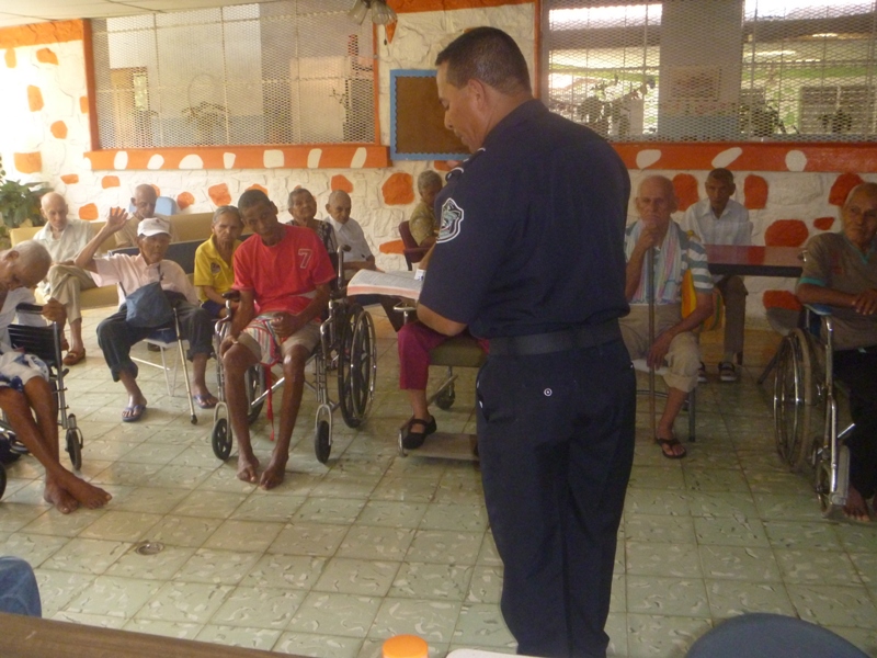 Las unidades de la Policía Preventiva Cristiana de la Zona Policial de Chiriquí, llevan cada miércoles un mensaje de esperanza basado en las Sagradas Escrituras al hogar Santa Catalina donde alberga unos 70 ancianos. El sentirse que ya sus fuerzas le han abandonado por el desgaste de los años; sentir que ya su presencia es un estorbo para otros; el creer que ya no son útiles para nada; o el vivir con el recuerdo de sus propias experiencias, sin que sean oídos, ahonda en ellos un estado de soledad. Pero la sagrada escrituras dice que: “No me deseches en el tiempo de la vejez; no me desampares cuando mi fuerza se acabe” (Salmo 71:9) El Sub-Teniente Lucinio Miranda de la Policía Cristiana dice que la esperanza es uno de los resortes principales que mantiene a la humanidad en movimiento.” es el oxigeno para los pulmones, es el significado de la vida, que no se basa en la debilidad del hombre ni en la incertidumbre de los acontecimientos, sino que está garantizada por la acción de Dios, que colma plenamente los anhelos del corazón y es tan segura como Dios mismo. El amor de Dios es como un principio interior que dinamiza toda la existencia, es algo real, que se hace presente en la intimidad del creyente por medio del don del Espíritu Santo, esta es la razón por la cual la esperanza cristiana no es una ilusión, con una palabra de esperanza basada en las sagradas escrituras. agregó el Teniente Miranda. |