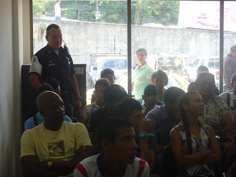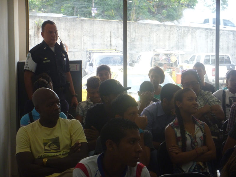 60 Personas entre padres de familia y jóvenes en riesgo social acudieron en la mañana de de este viernes 31 de enero a recibir una charla de orientación que fue dictada por unidades de la Niñez y Adolescencia de la Zona de Policía de Arraiján. Las unidades explicaron a los adolescentes los constantes peligros que representa el mantenerse en las calles a altas horas de la noche, incurriendo en el incumplimiento del toque de queda. Los jóvenes estuvieron acompañados de los padres a quienes se les brindó recomendaciones para no ser sancionados por permitir que sus hijos se mantengan a deshoras en las calles y los constantes riesgos que acechan a niños y adolescentes. |