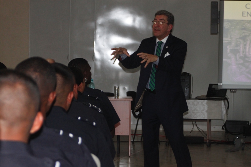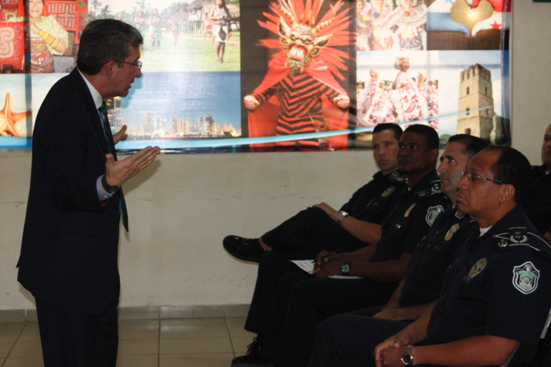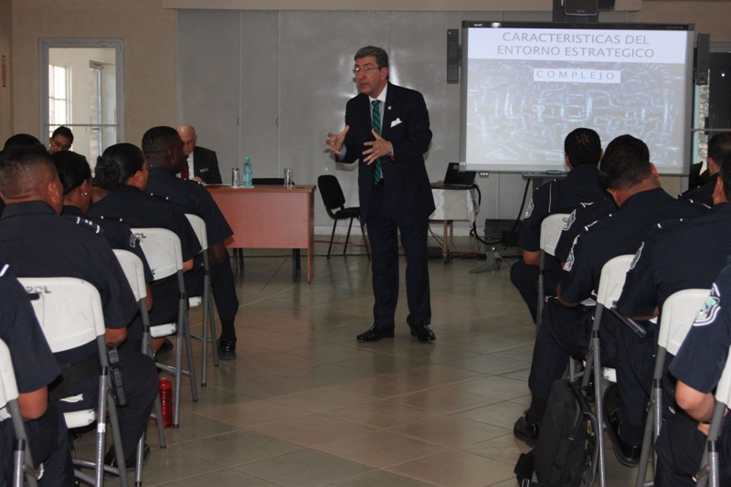 Oficiales de la Dirección Nacional de Docencia y los Alferes del Centro de Enseñanza Superior (CES) participaron de una conferencia en temas de Seguridad y Defensa brindado por generales de brigadas retirado del Center For Hemisfheric Defense Studies. Esta actividad se llevó a cabo este 3 de febrero en el auditorio del Instituto Superior Policial Gamboa (ISPOL), donde se les instruyó a los asistentes fundamentos teóricos e instrumentos analíticos que los ayuden a desarrollar y ampliar sus competencias para participar efectivamente en los procesos de formulación, toma de decisiones, implementación, evaluación y control de la estrategias y política de defensa. El señor Guillermo Pacheco Gaitán profesor en Asunto de Seguridad Nacional dijo sentirse complacido en ser invitado a dictar esta conferencia en la escuela de la Policía Nacional de Panamá y ponderó los conocimientos que retribuyo a los asistente en materia de seguridad. |