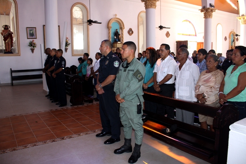 Una misa solemne celebrada en la Catedral San Juan Bautista de Penonomé, fue realizada este martes 4 de febrero por la unidades de la Zona de Policía de Coclé en recordación a su compañero Osman Quintero, quien falleció hace seis meses, en cumplimiento del deber en la comunidad que conduce a Puerto El Gago, cuando salvó la vida de un ciudadano que iba hacer atropellado. Luego del acto religioso, los deudos se reunieron con el Jefe de la 2da zona policial el Subcomisionado Nadim García, a quien le agradecieron su hospitalidad. En este sentido, familiares, amigos y agentes policiales se trasladaron al lugar donde ocurrieron los hechos, para pintar un corazón celeste que permanecerá simbólicamente en memoria de aquel amigo que nunca olvidarán. |