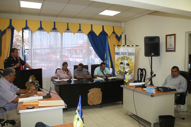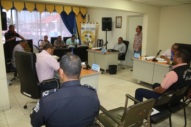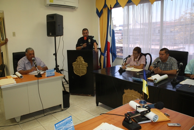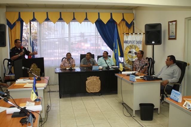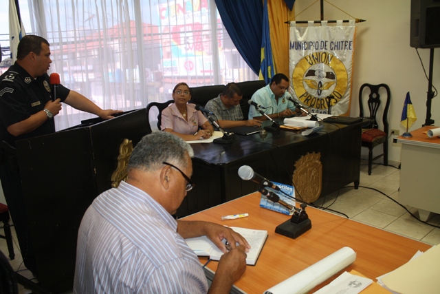 El Subcomisionado Ismael Herrera, jefe de la Sexta Zona de Policía de Herrera se presentó ante los Concejales del distrito de Chitré como el nuevo Jefe de la zona, en medio de una cortesía de sala que se le concedió en la reunión del Concejo Municipal. De igual manera aprovechó para tocar temas de interés como son las actividades propias de carnavales, el encuentro Juvenil Católico, entre otros temas. El Subcomisionado Herrera se hiso acompañar por su plana mayor, encargados de las Subdirecciones de Tránsito, de la DIJ, quienes plantearon su disposición a seguir trabajando en conjunto con las autoridades municipales y de la provincia en pro del porvenir de la provincia. |
